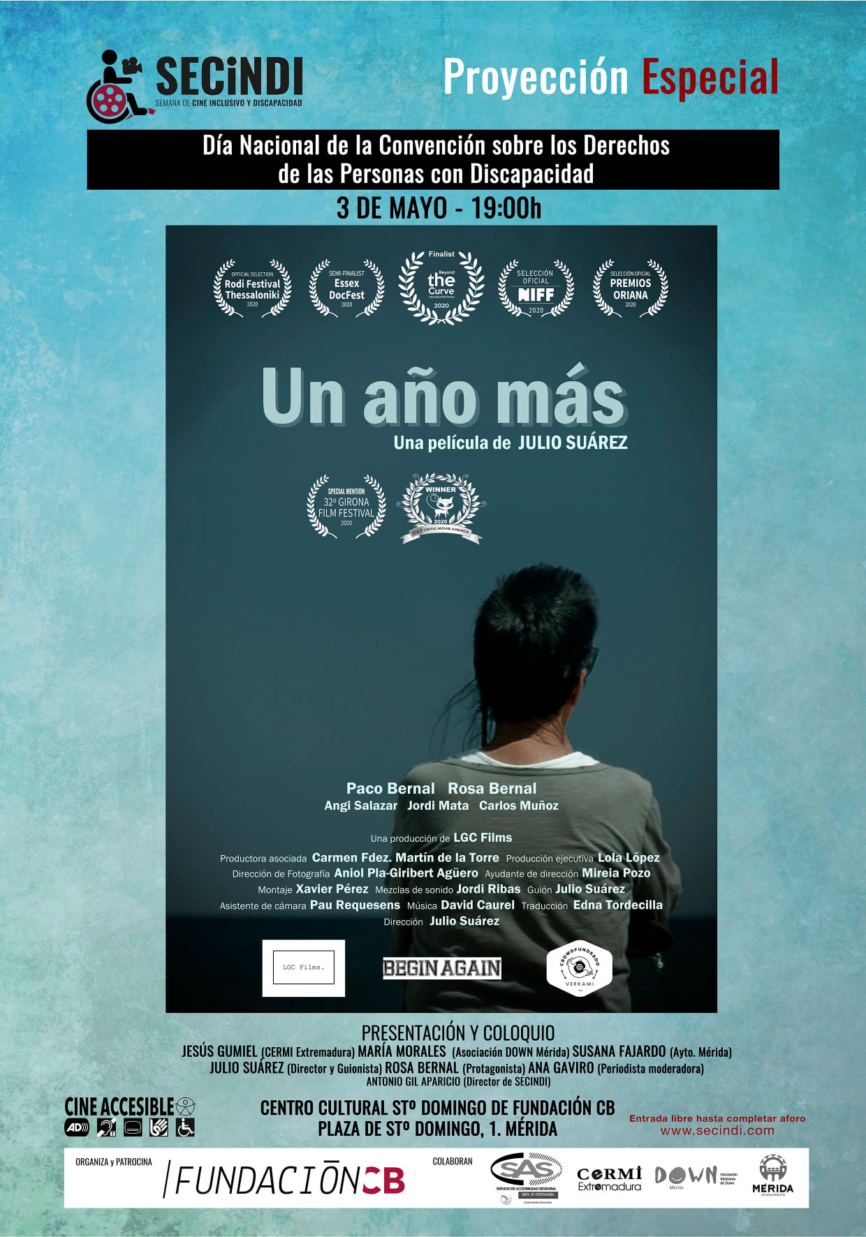 El 3 de mayo, Secindi se une a la celebración del Día Nacional de la Convención sobre los Derechos de las Personas con Discapacidad, con la proyección de la película ‘Un año más’ de Julio Suárez, a las 19:00 horas, en el Centro Cultural Santo Domingo de Fundación CB. Tras la proyección se celebrará un coloquio con el director y guionista y una de las protagonistas, Rosa Bernal. Entrada libre.