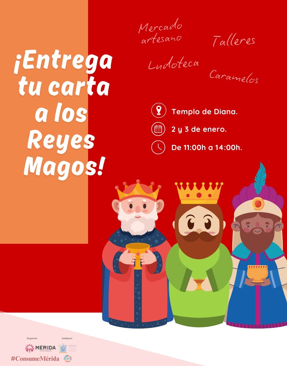 Los más pequeños podrán entregar su carta a los Reyes Magos, los días 2 y 3 de enero, de 11:00 a 14:00 horas, en el Mercado Artesano de Navidad ubicado en el Templo de Diana.