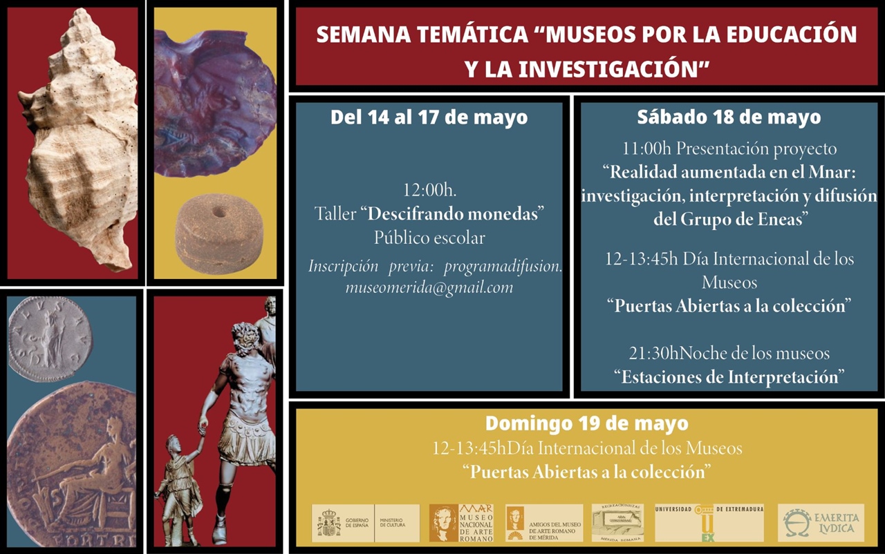Del 14 al 19 de mayo, el Museo Nacional de Arte Romano celebra la semana temática “Museos para la educación y la investigación” en el que reflexionará sobre el concepto “educar para investigar” e “investigar para educar”, con una serie de actividades dirigidas a diferentes públicos.