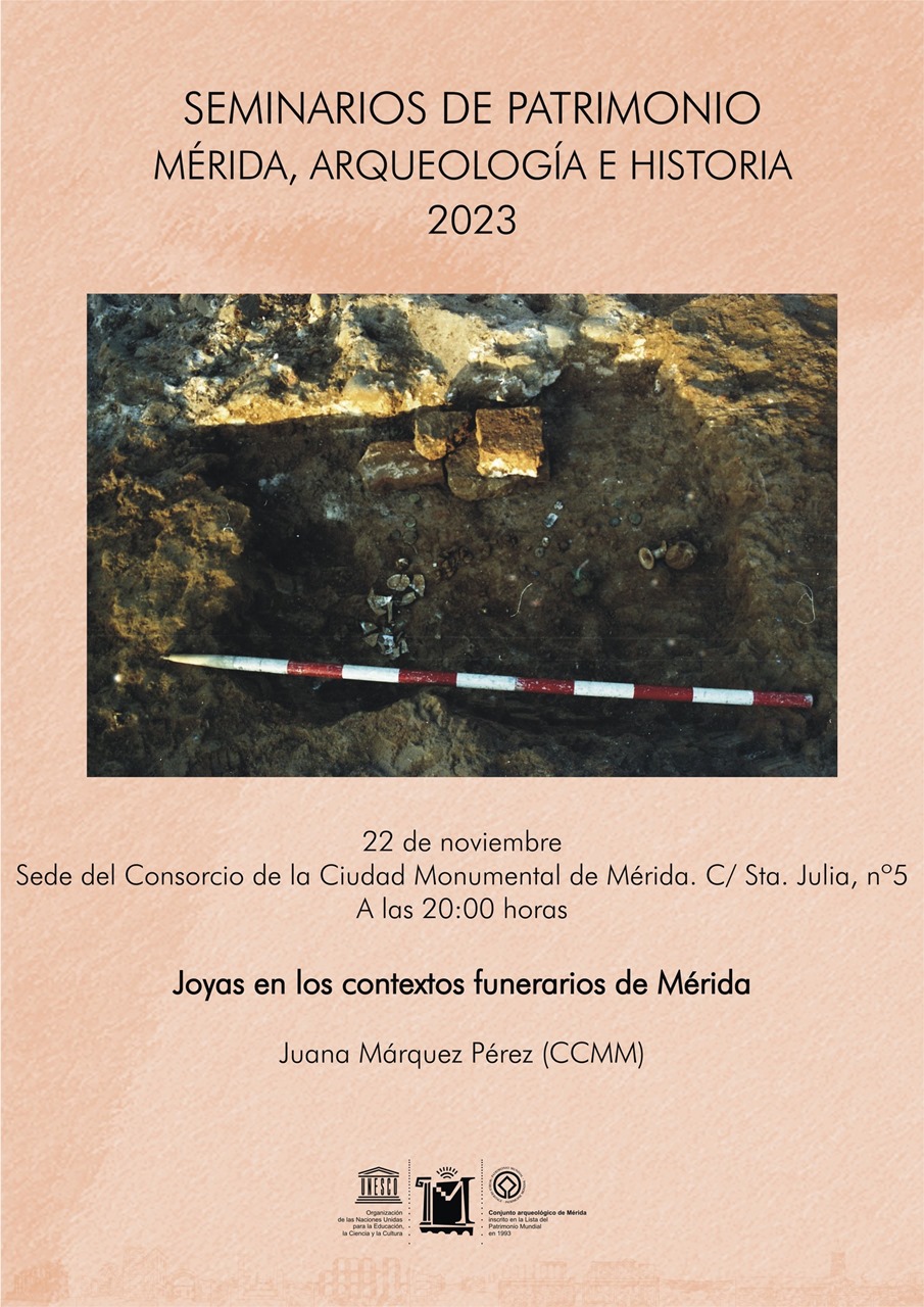 El miércoles 22 de noviembre, el Consorcio de la Ciudad Monumental organiza un nuevo Seminario de Patrimonio con la conferencia que impartirá la arqueóloga del Consorcio Juana Márquez Pérez, con el siguiente tema: “Joyas en los contextos funerarios de Mérida”.