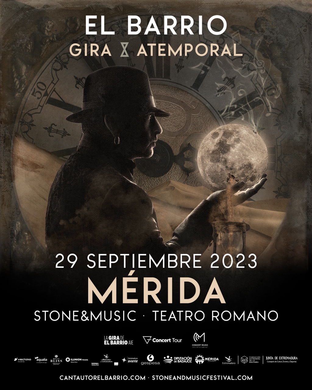 El Barrio regresa a los escenarios en 2023 para presentar en directo su nuevo álbum ‘ATEMPORAL’ que salió a la venta el pasado 2 de diciembre. Este disco conserva el aire flamenco tan característico de los comienzos de su carrera en 1996, un trabajo con el que, en palabras del propio artista, “volver a mi pasado y traer retales de antiguos discos”. Su gira Atemporal 2023 recalará en el Teatro Romano de Mérida el 29 de septiembre para que el Stone viva una nueva noche flamenca y ponga el broche perfecto a la que se espera que sea otra edición única del STONE & MUSIC Festival.