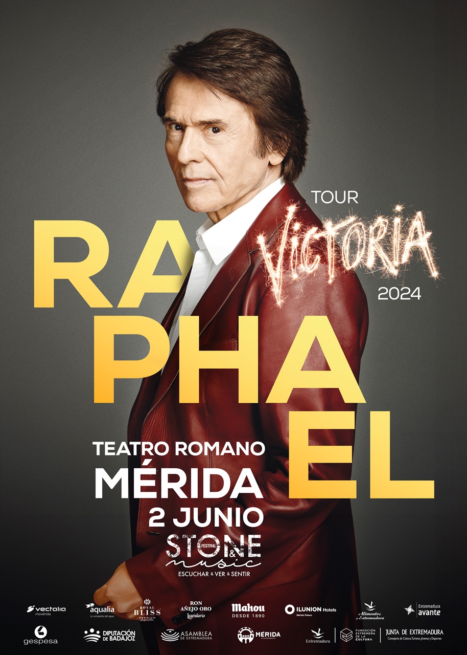 Raphael volverá el 2 de junio a su casa, el Teatro Romano de Mérida, con su ‘Tour Victoria 2024’ para repasar los grandes éxitos de su extenso y aclamado repertorio. Acaba de publicar su último disco, que reúne las 30 canciones de la ‘Gira Victoria’ en su versión de estudio, además de otros tres temas inéditos escritos y producidos por Pablo López.