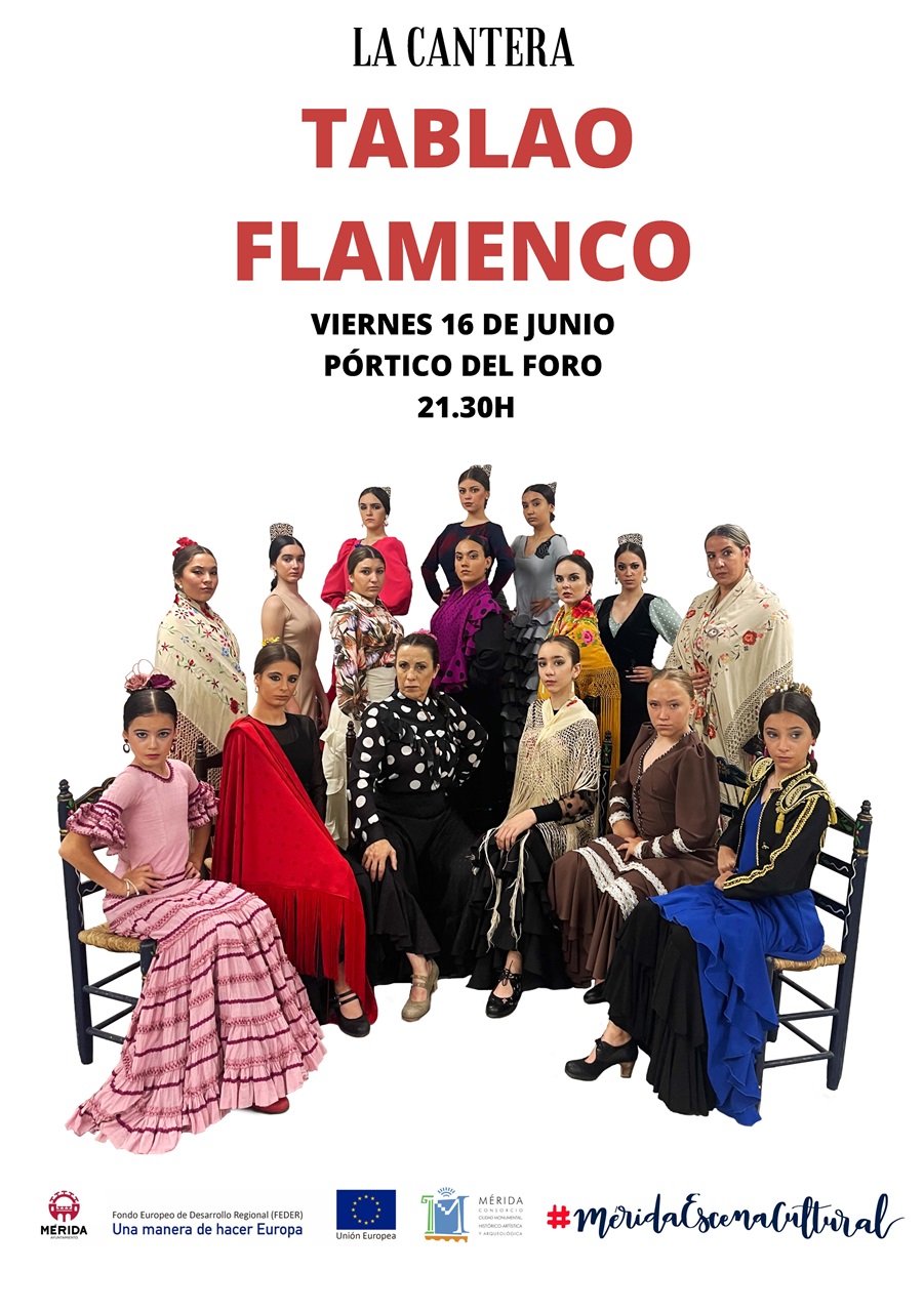El próximo viernes, 16 de junio, a las 21.30 horas, en el Pórtico del Foro tendrá lugar el espectáculo Tablao flamenco de La Cantera, una actuación con bailes en solitario y una presentación en común de los alumnos participantes.