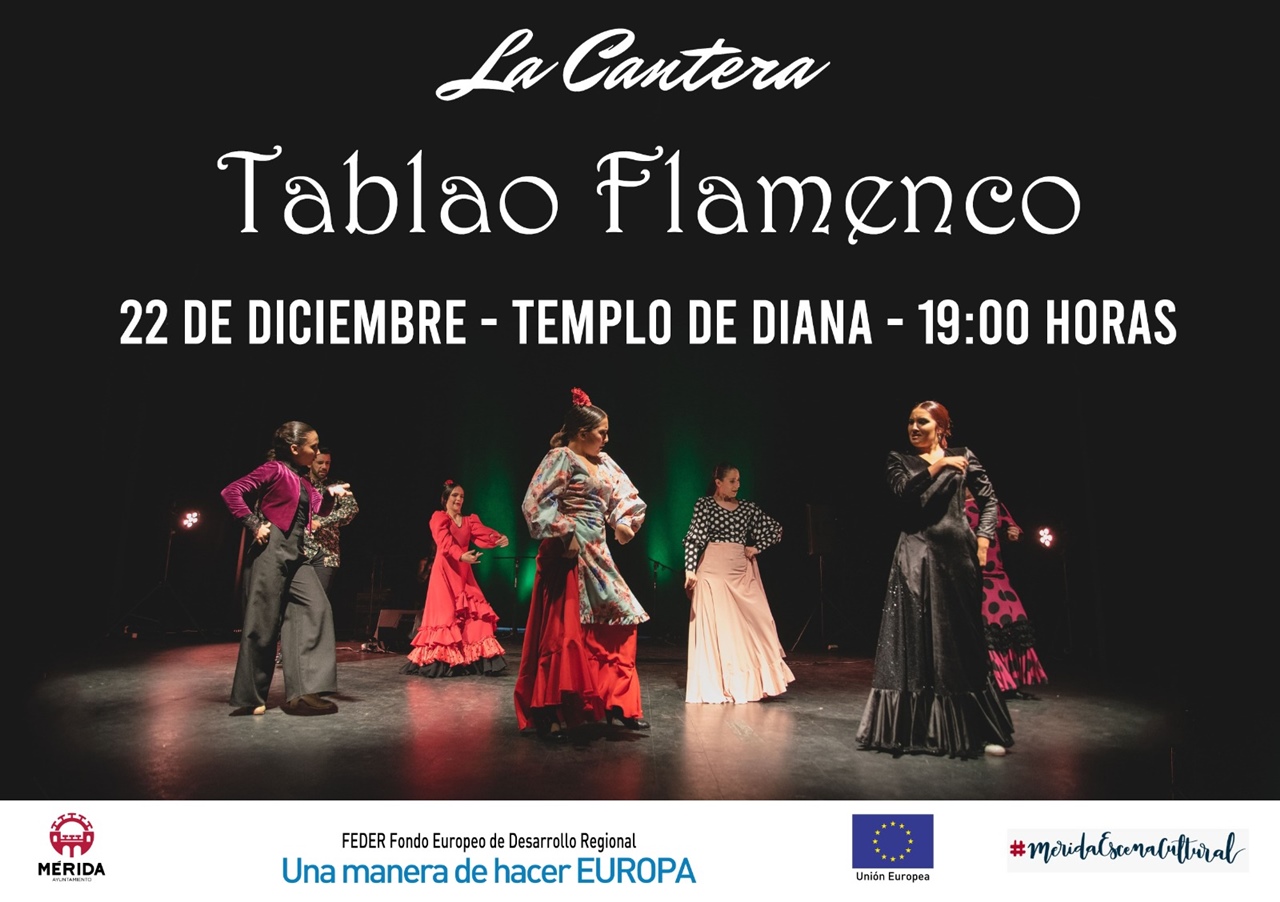 El jueves 22 de diciembre, el Templo de Diana acoge el espectáculo ‘Tablao flamenco’ de La Cantera, una actuación con bailes en solitario y una presentación en común a cargo de alumnos de este arte dirigidos por la bailaora Fuensanta Blanco en esta nueva aventura como solistas. Estos talentos serán acompañados por músicos profesionales de flamenco.