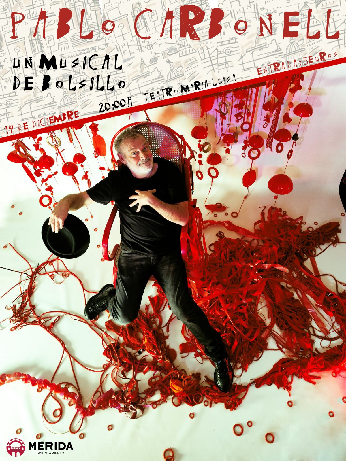 Sinopsis: Un espectáculo entre el monólogo y la canción con la brillante interpretación de uno de nuestros artistas más queridos. Pablo Carbonell en “Un monólogo de bolsillo” trae sus nuevas composiciones, estruendosas, con denominación de origen, folclóricas, con textos mucho más elaborados, maduros y mucho más divertidos. “Un monólogo de bolsillo” volveré a demostrar que la mejor manera de hablar en serio es usar el sentido del humor. Junto a ellas escucharemos sus clásicas canciones todo aderezado con chispeantes monólogos. Música y risa.