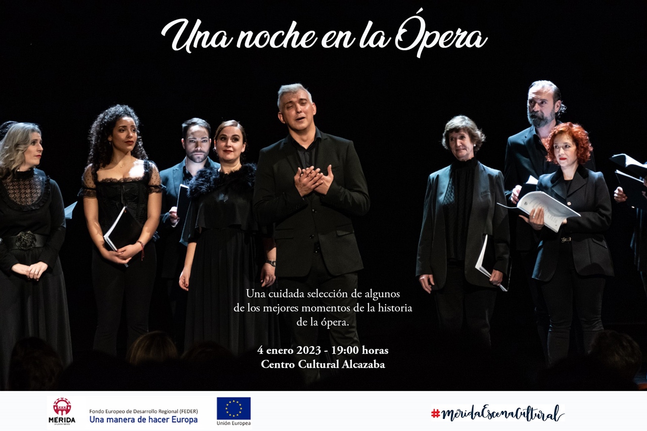 “Una Noche en la Ópera”, es una cuidada selección de algunos de los mejores momentos de la historia de la ópera. Arias, dúos, tercetos y diversos números de conjunto, nos sumergen en aquellas maravillosas páginas. En una cuidada versión de “Gala Lírica”, viviremos una noche inolvidable con repertorio de Donizetti, Bellini, Mozart, Delibes, Gounod, Offenbach, o Giuseppe Verdi, quienes cobrarán vida a través de sus creaciones, con un fantástico elenco de cantantes líricos de Extremadura.