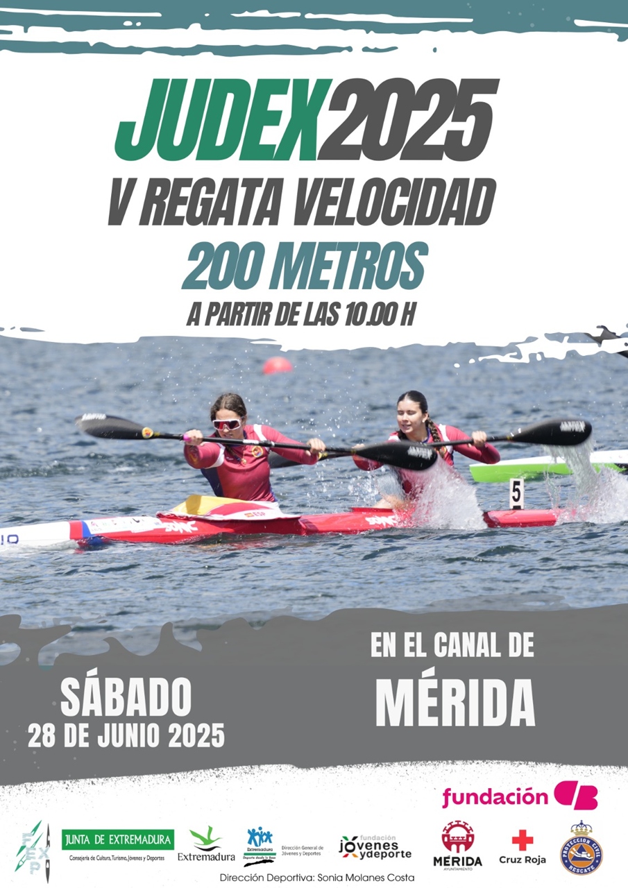 El sábado 28 de junio se celebrará la V Regata de Velocidad (200 m) JUDEX Piragüismo en el Río Guadiana a su paso por Mérida.