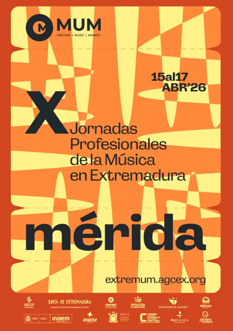 Del 15 al 17 de abril de 2026, Mérida acogerá la décima edición de las Jornadas Profesionales de la Música en Extremadura. Un espacio de referencia donde todos los agentes implicados en la industria musical de Extremadura tendrán la oportunidad de poner en valor el talento creativo de diferentes artistas extremeños.