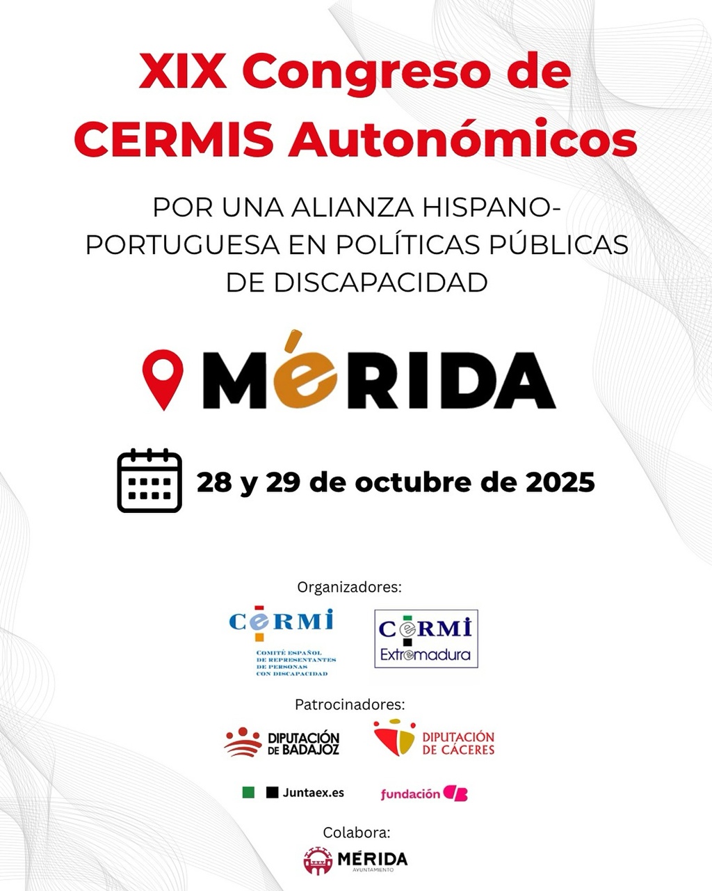 Mérida acogerá los días 28 y 29 de octubre un espacio de diálogo y cooperación para avanzar en derechos y políticas de discapacidad a ambos lados de la frontera. El programa combina sesiones de debate con representantes y expertos de los CERMIS de toda España y Portugal. Un evento organizado por CERMI Estatal y CERMI Extremadura que refuerza el compromiso colectivo por una sociedad más inclusiva y accesible para todas las personas.