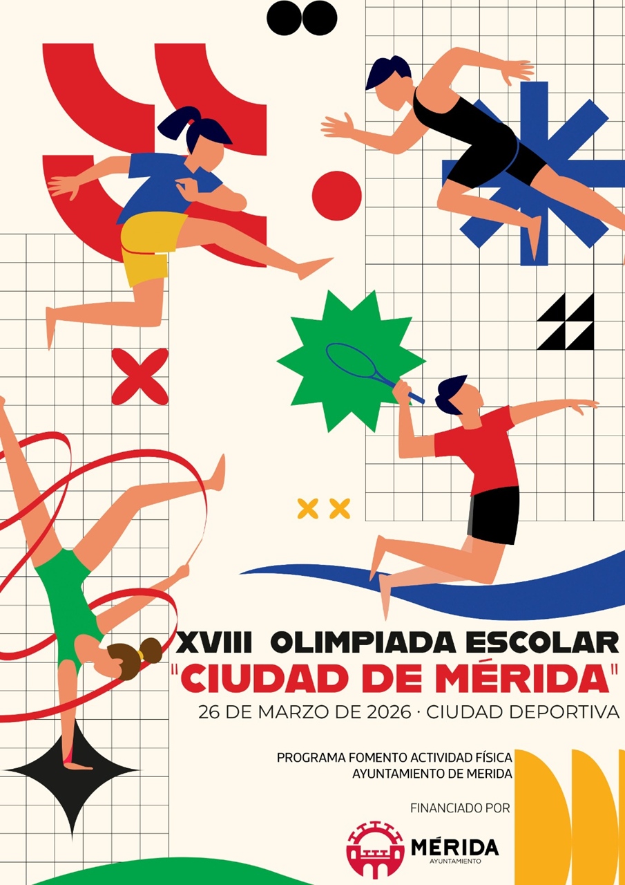El próximo día 26 de marzo de 2026 se celebrará en la Ciudad Deportiva de Mérida una nueva edición de Olimpiada Escolar en jornada matutina. Una jornada de convivencia lúdico deportiva que junta al alumnado de la Capital Emeritense del año 2014 y 2015 en un mismo espacio y con más de una decena de deportes y competiciones diferentes que harán pasar a los participantes en la ultima gran convivencia con otros colegios de Mérida, previo al paso a la ESO.
