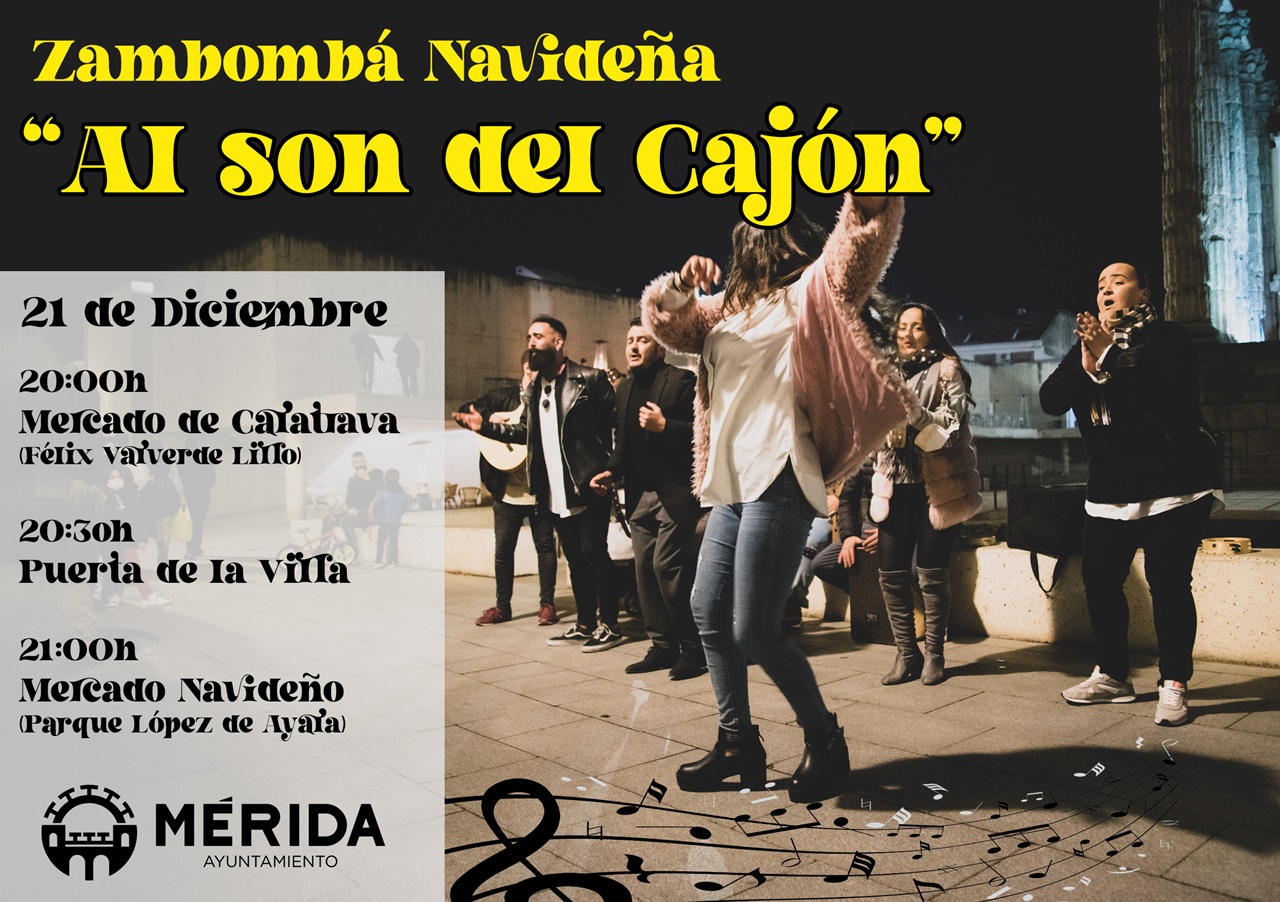 El Cuadro Flamenco ‘Al Son de Cajón’ ofrecerá una Zambombá Navideña en varios puntos de la ciudad durante el miércoles 21 de diciembre. A las 20:00 horas, en el Mercado de Calatrava (Félix Valverde Lillo); a las 20:30 horas, en la Puerta de la Villa; y a las 21:00 horas, en el Mercado Navideño.