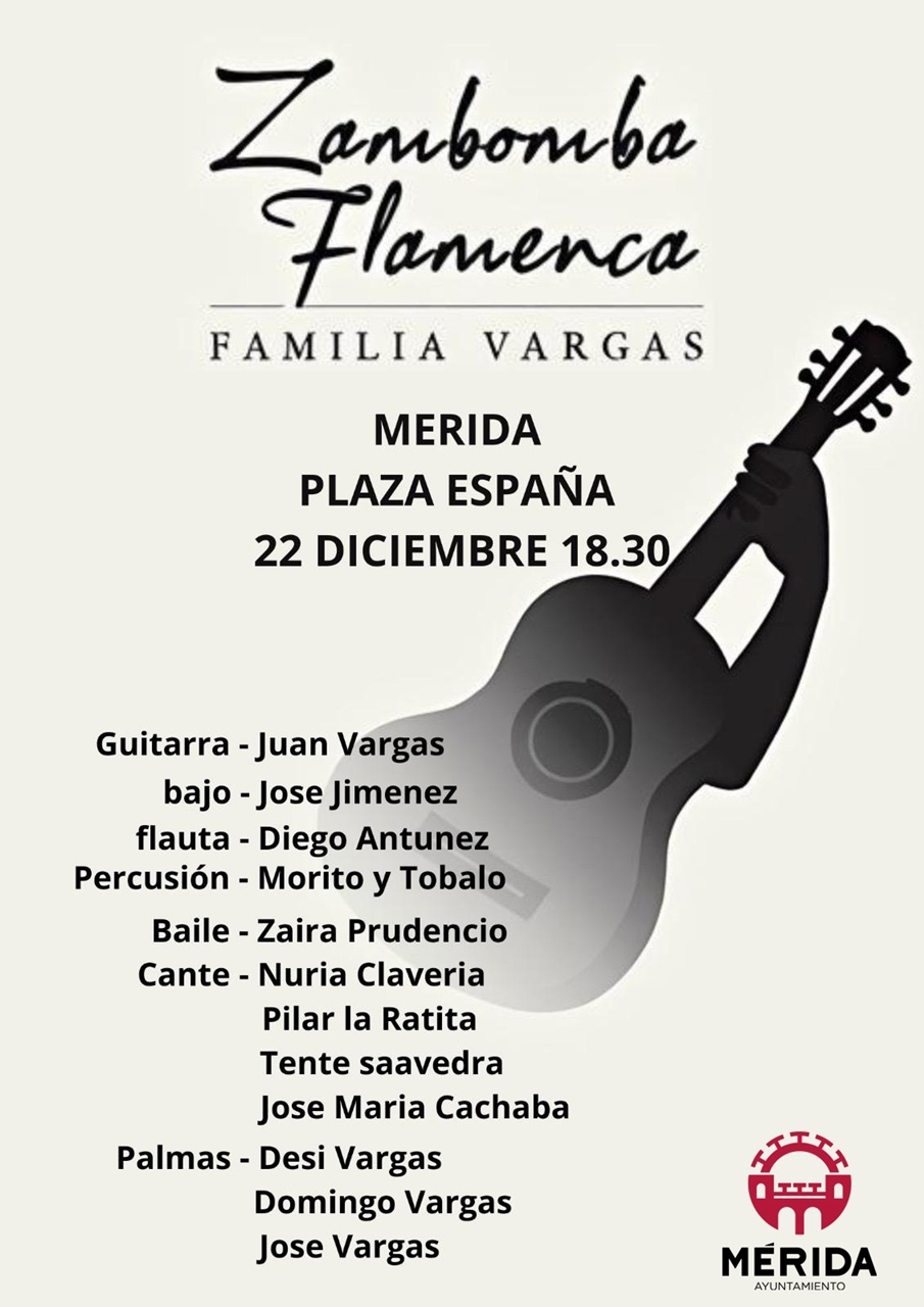 La Familia Vargas ofrecerá una Zambomba Flamenca el domingo 22 de diciembre, a las 18:30 horas, en la Plaza de España. Estarán acompañados por grandes artistas.
