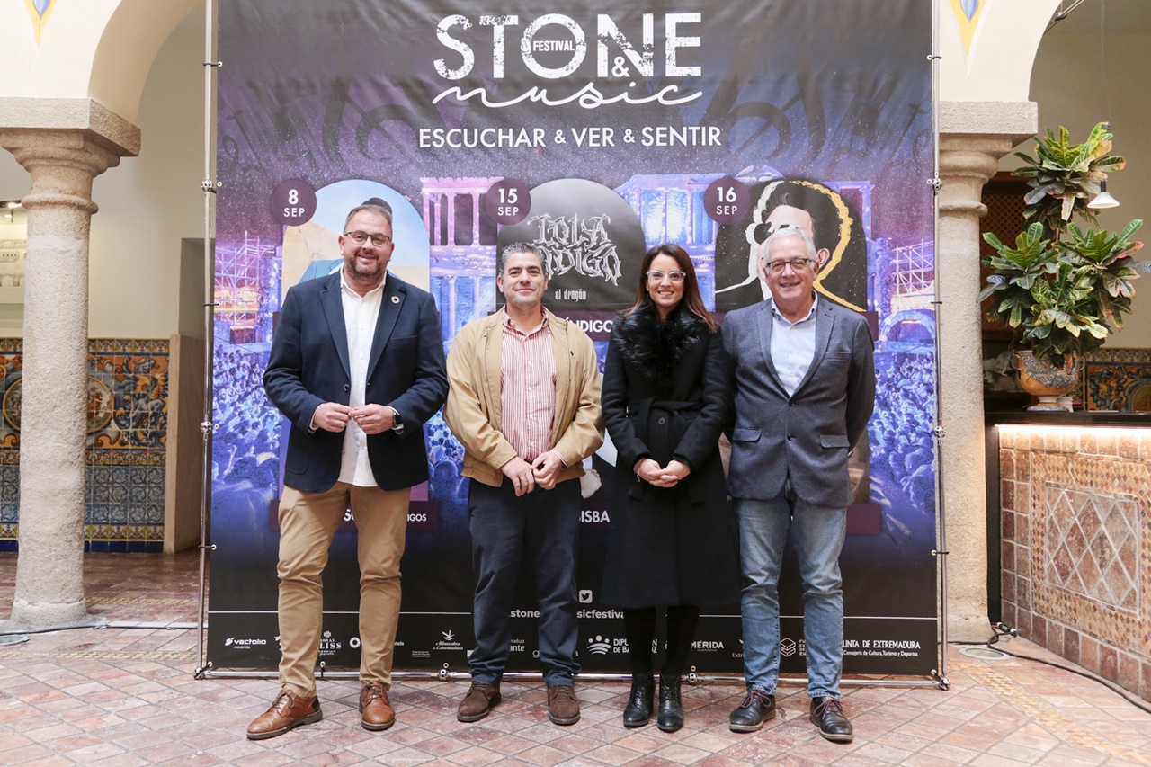 El alcalde, Antonio Rodríguez Osuna, acompañado por los delegados de Juventud, Felipe González, y de Festejos, Ana Aragoneses, ha asistido a la presentación del primer avance del Stone & Music Festival de 2023 que celebra su octava edición.