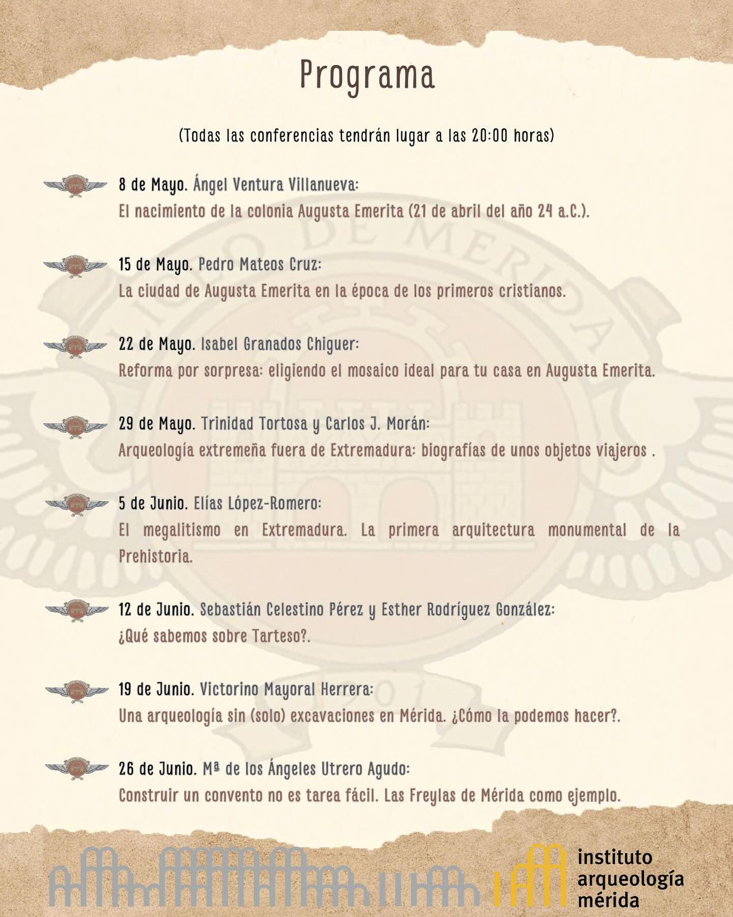 • El Ciclo de Conferencias del Instituto del Arqueología tendrá lugar todos los miércoles a las 20 horas en el Liceo de Mérida hasta el próximo 26 de junio