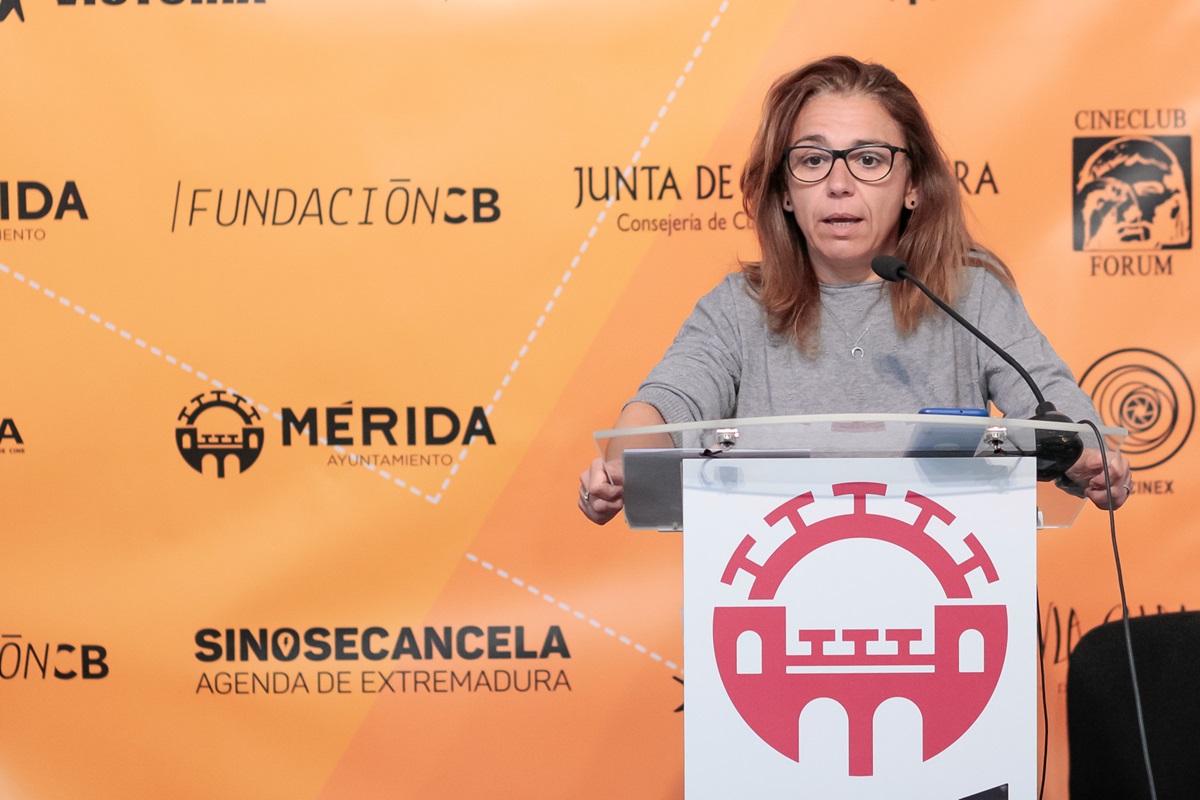 La delegada de Cultura, Silvia Fernández, la presidenta del cine club Forum, Sofía Serrano, y el director del FCIMérida, Ángel Briz Hernández han presentado la actividad, que patrocinan el Ayuntamiento de Mérida y la Junta de Extremadura.