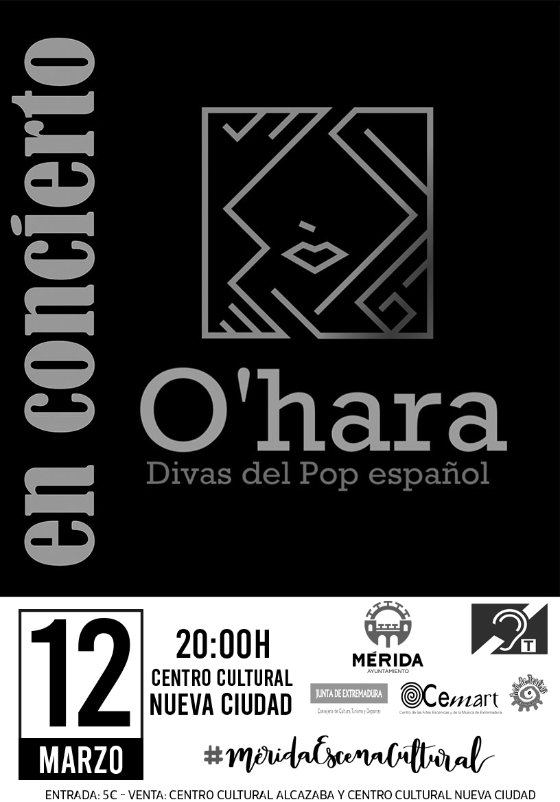 El próximo sábado, 12 de marzo, en el Centro Cultural de Nueva Ciudad, el grupo emeritense O’Hara Divas del Pop Español, integrado por músicos con gran bagaje dentro del panorama extremeño y nacional y que hace tributo a las grandes voces femeninas del Pop Rock español, ofrecerá un concierto a partir de las 20 horas.