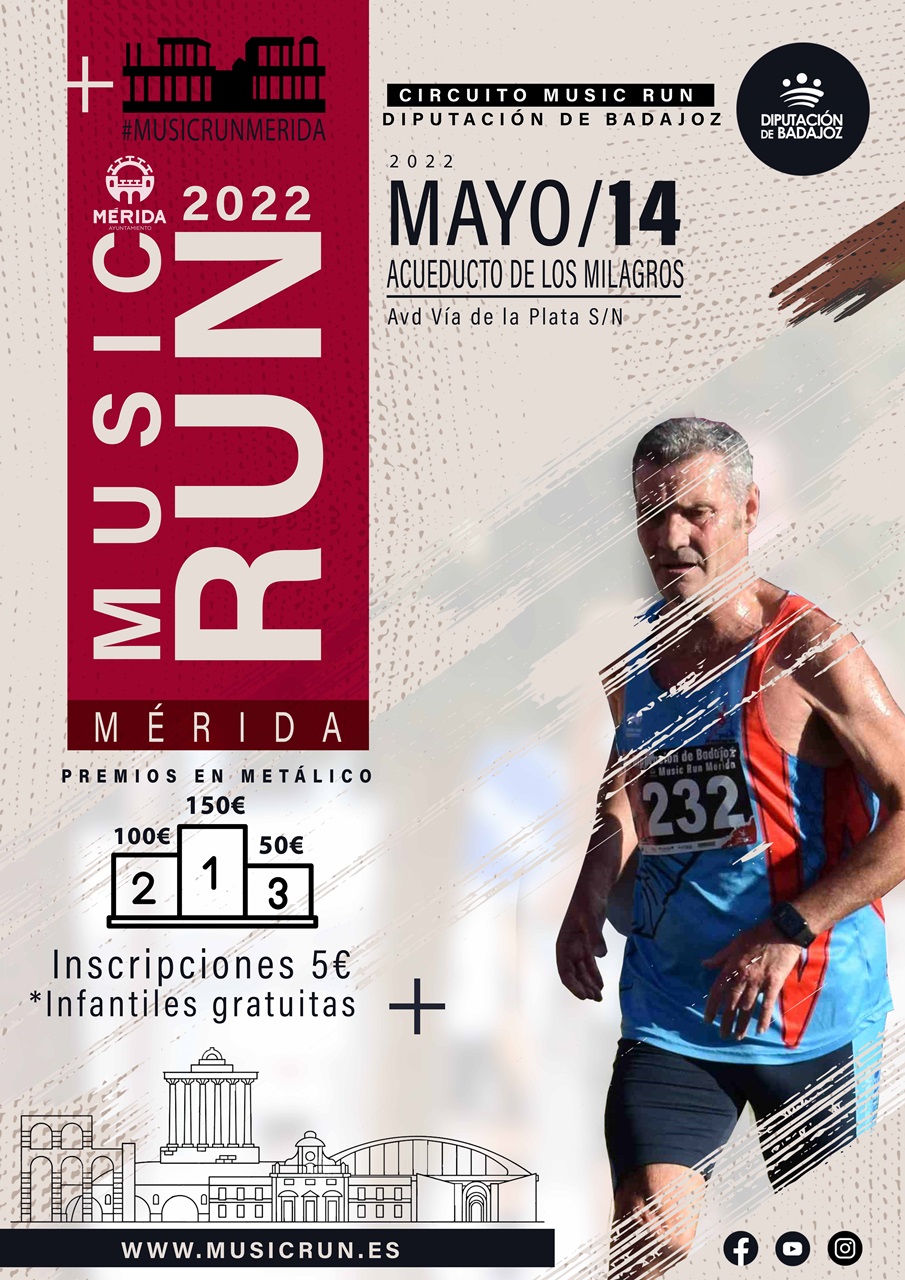 - Las inscripciones continúan abiertas en la web https://musicrun.es/merida/, y son gratuitas en el caso de los niños, que pueden recorrer distintas distancias en función de su edad, y de 5 euros para los adultos.