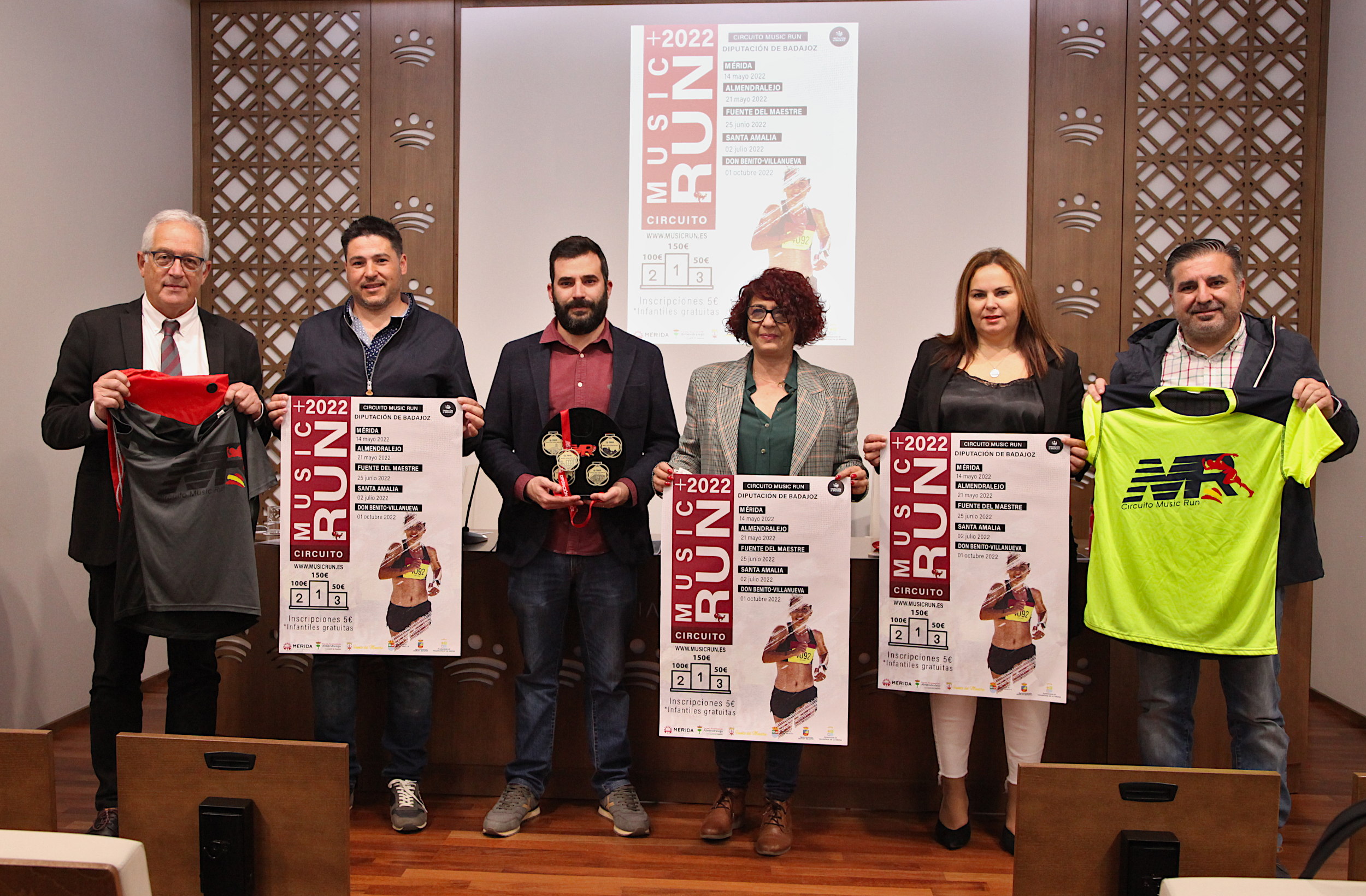 El delegado de Deportes, Felipe González, ha asistido a la presentación del Circuito de carreras populares Music Run 2022, organizado por la Diputación de Badajoz que se iniciará en Mérida el próximo 14 de mayo y que finalizará con una carrera conjunta entre Don Benito y Villanueva de la Serena el próximo 1 de octubre con un total de cinco sedes y con premios en metálico entre sus novedades.