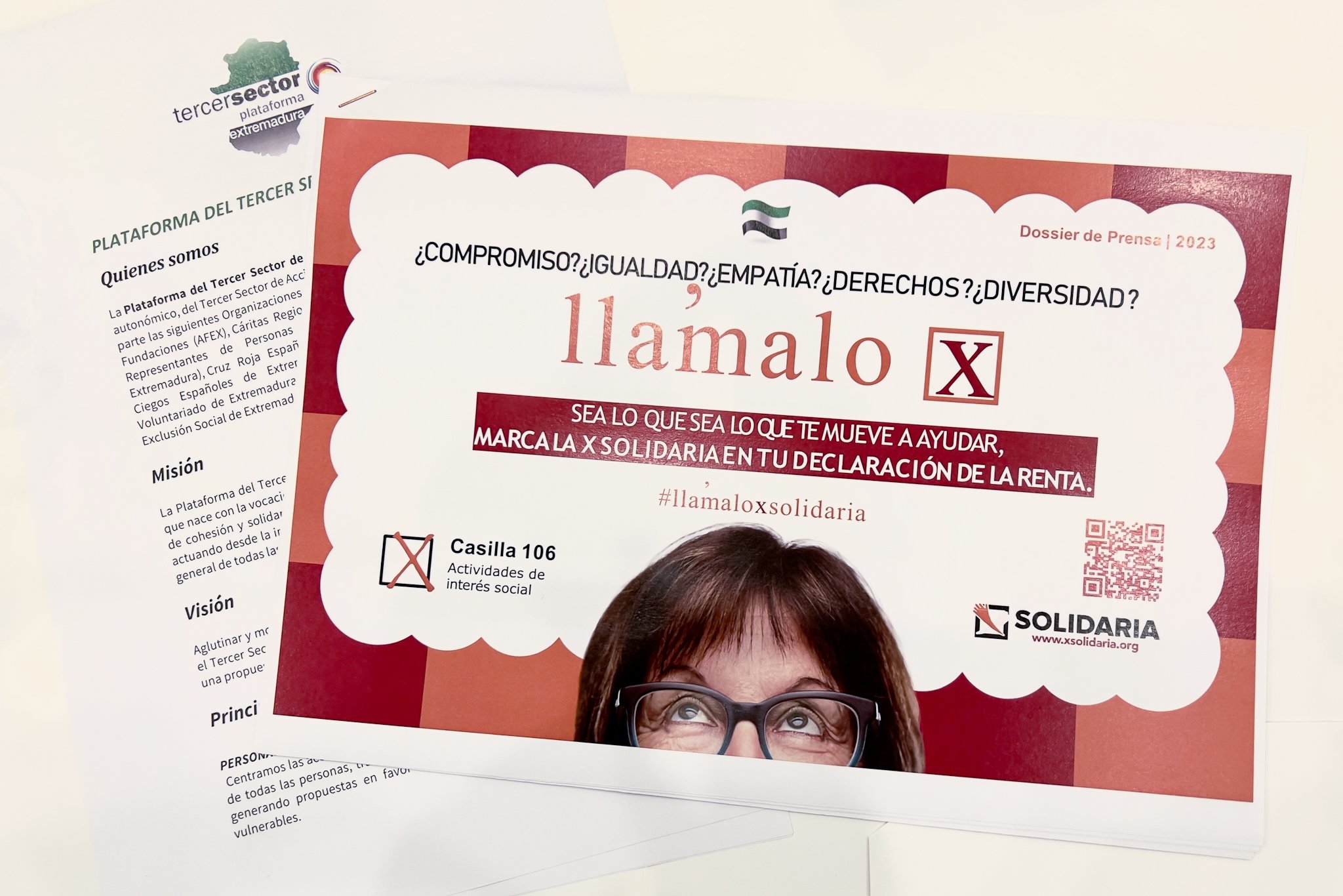 Por este motivo desde la Plataforma del Tercer Sector de Extremadura han puesto en marcha una campaña bajo el nombre ‘Llámalo X’ con el objetivo de informar a los contribuyentes de la importancia de marcar la casilla 106. Además, se pueden marcar las casillas de la Iglesia Católica y la 106 para organizaciones sociales a la vez, y con este gesto, sin que le cueste nada al contribuyente, se aporta el 0’7% + el 0’7% a cada una de las entidades referidas.