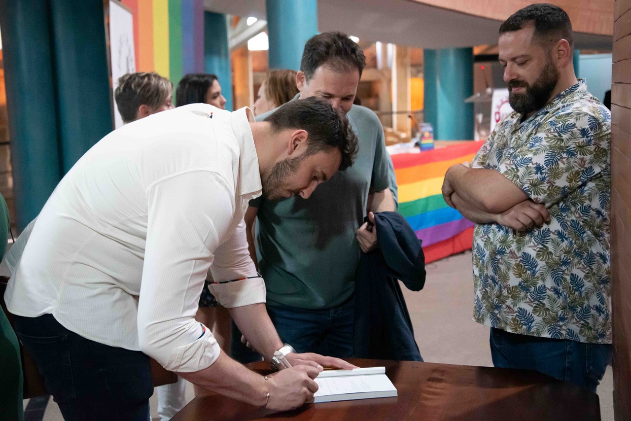 El alcalde, Antonio Rodríguez Osuna, junto a parte de su equipo de gobierno asistió ayer a la presentación del libro “Balón amarillo, bandera arcoíris: el deporte de élite sale del armario” del Víctor Gutiérrez en Centro Cultural Alcazaba. Esta presentación del libro se encuentra dentro del circuito de “Tinta y pluma, mes de la literatura y el libro LGBTIQ+” que desarrolla la Diputación de Badajoz con la asociación Limbo Cultura.