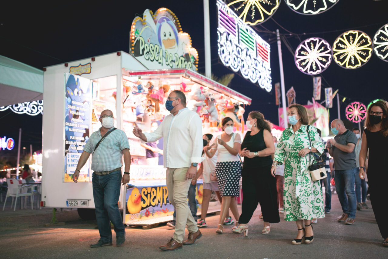 Para finalizar la velada, el alcalde junto con el equipo de Gobierno pasearon por la recién estrenada Feria 2021, en la que se reunieron con varios de los comerciantes que estaban instalados en las casetas del recinto ferial y pudieron pulsar la situación en la que se encuentran.