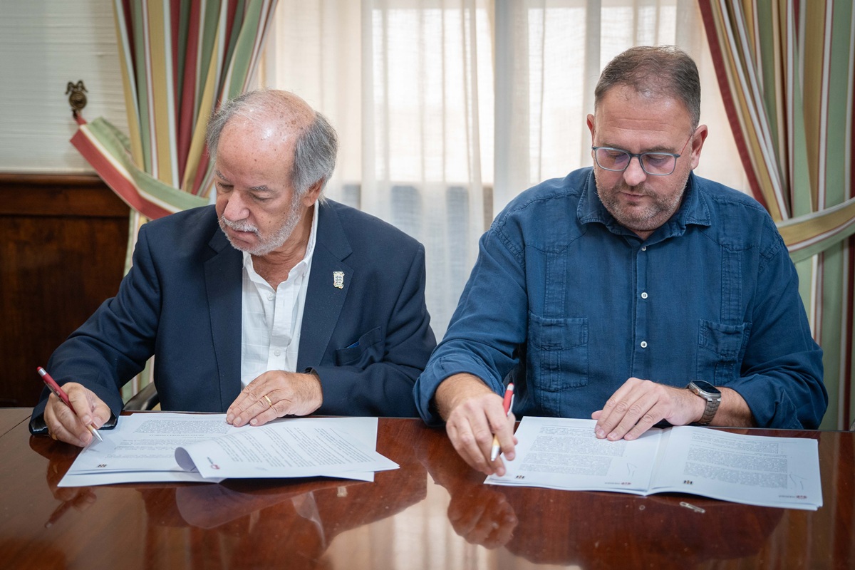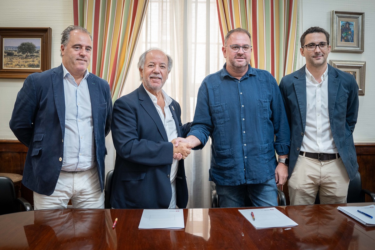 El Alcalde firma con el presidente de la AD Mérida el nuevo convenio de cesión del estadio Romano José Fouto