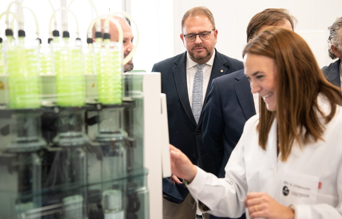 El alcalde, Antonio Rodríguez Osuna, junto al presidente de la Junta de Extremadura, Guillermo Fernández Vara, al consejero de economía del gobierno regional, Rafael España y el subdirector de la Fundación Incyde, José María Páraga, han visitado hoy la nueva la Incubadora de Alta Tecnología en Bioeconomía y Economía Circular situada en las instalaciones de IPROCOR, en el Polígono Industrial El Prado.