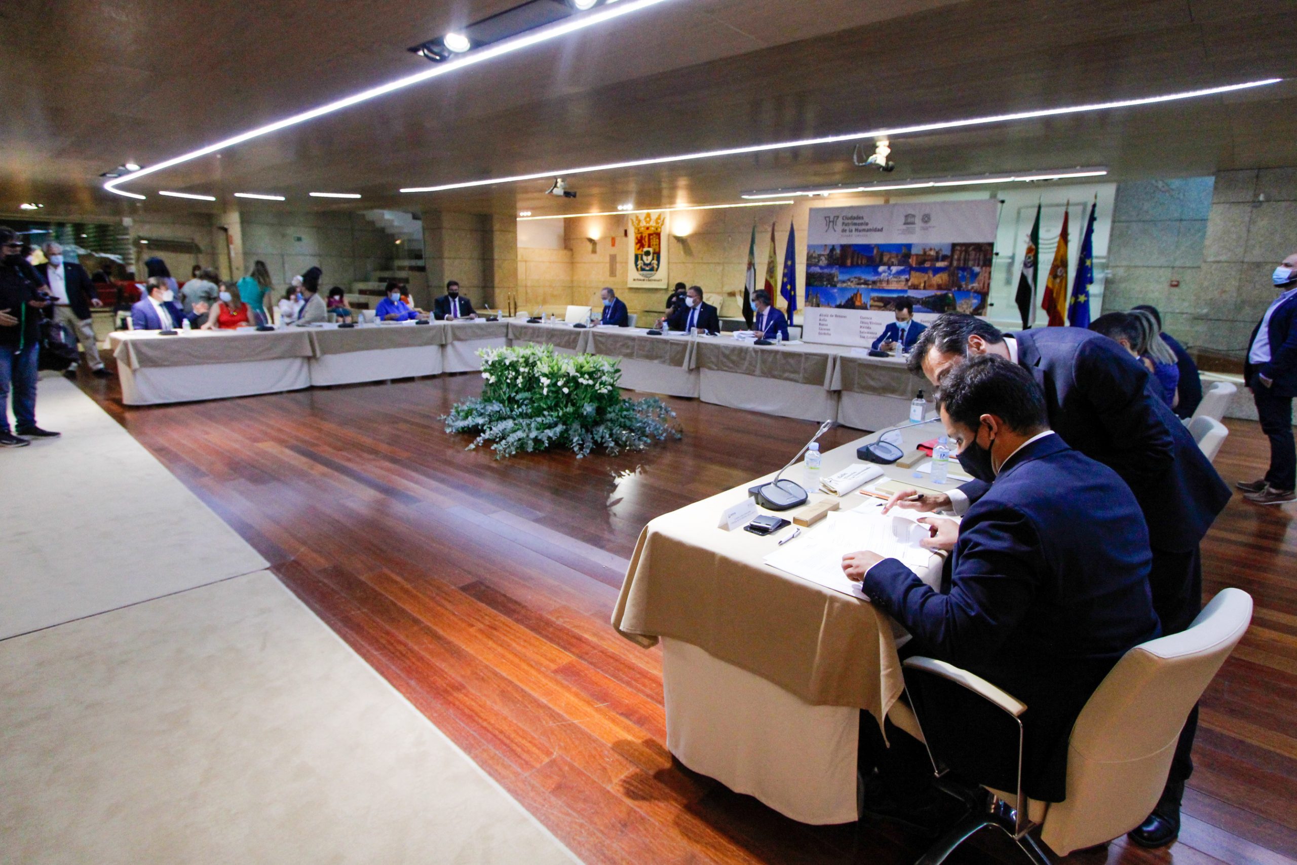 El Salón de Pasos Perdidos de la Asamblea de Extremadura ha acogido este encuentro de los alcaldes y alcaldesas de las quince ciudades Patrimonio de la Humanidad que conforman el Grupo.