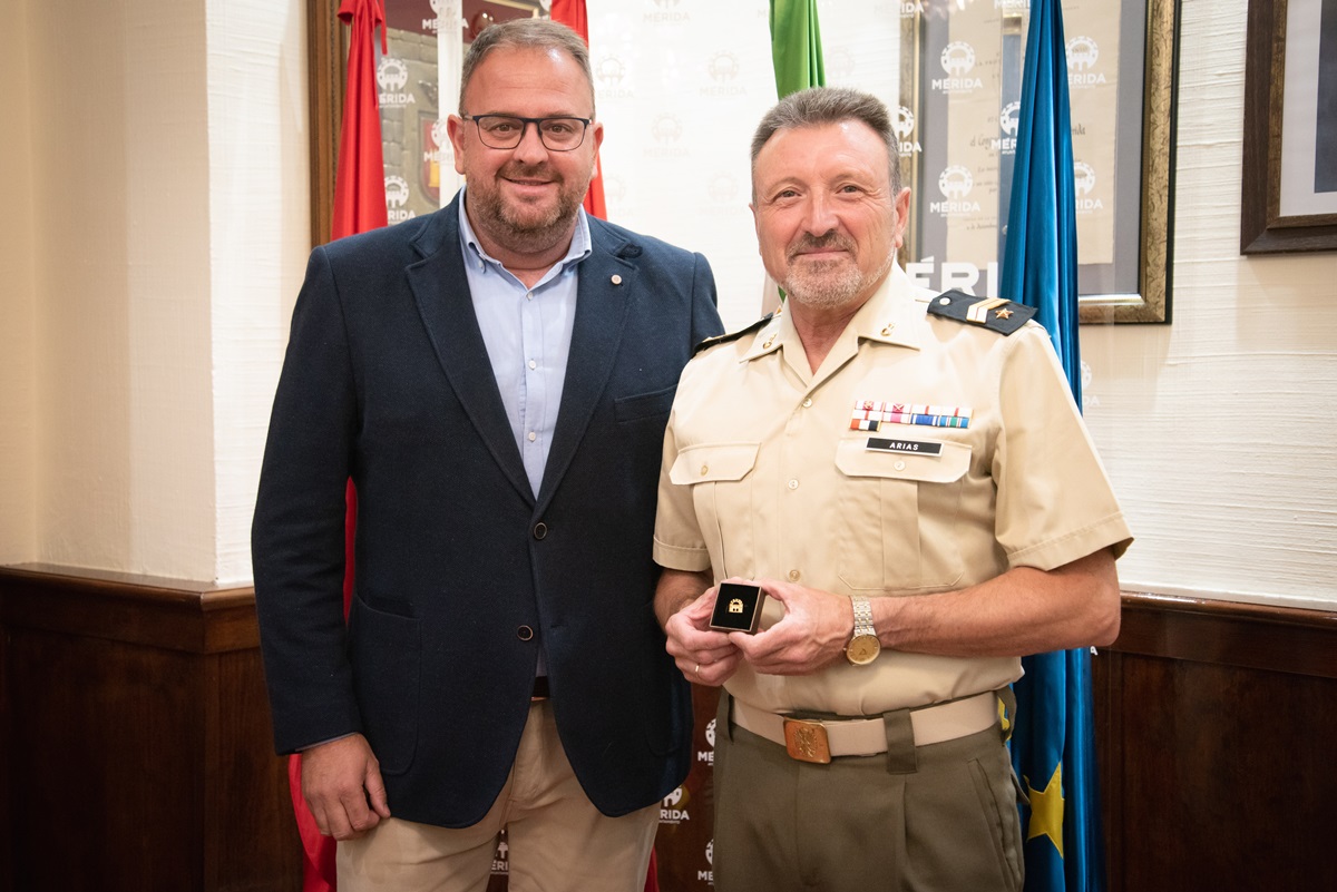 El alcalde ha recibido hoy en su despacho al suboficial mayor del Grupo de Artillería XI, Antonio Fernández Arias, que pasa a la reserva.