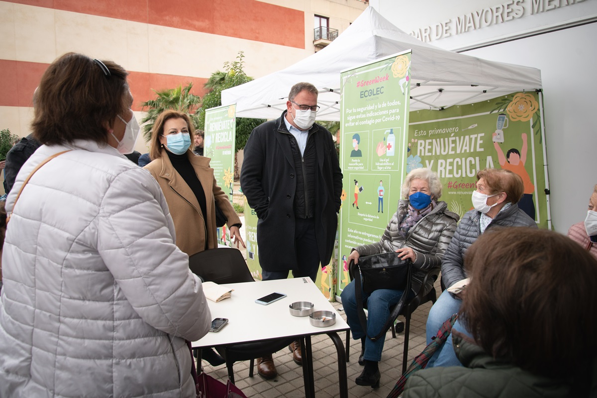 El Alcalde, Antonio Rodríguez Osuna, ha visitado hoy, en el Hogar de Mayores de la Zona Sur, la carpa informativa instalada por la Fundación Ecolec con motivo de la GreenWeek 22: “una campaña para concienciar sobre la recogida de los residuos de aparatos eléctricos y electrónicos de tal forma que podemos contribuir a los Objetivos de Desarrollo Sostenible y al reciclaje de los componentes”. La campaña, que ya se ha convertido en una cita obligatoria del calendario, ha recogido en sus cinco primeras ediciones más de seis toneladas de RAEE y además sigue aumentando el número de ciudades que participan año tras año en la iniciativa.