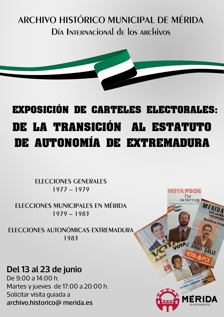 El Archivo Histórico Municipal de Mérida, con motivo de la celebración del Día Internacional de los Archivos, ha inaugurado la exposición de cartelería electoral De la Transición al Estatuto de Autonomía de Extremadura.