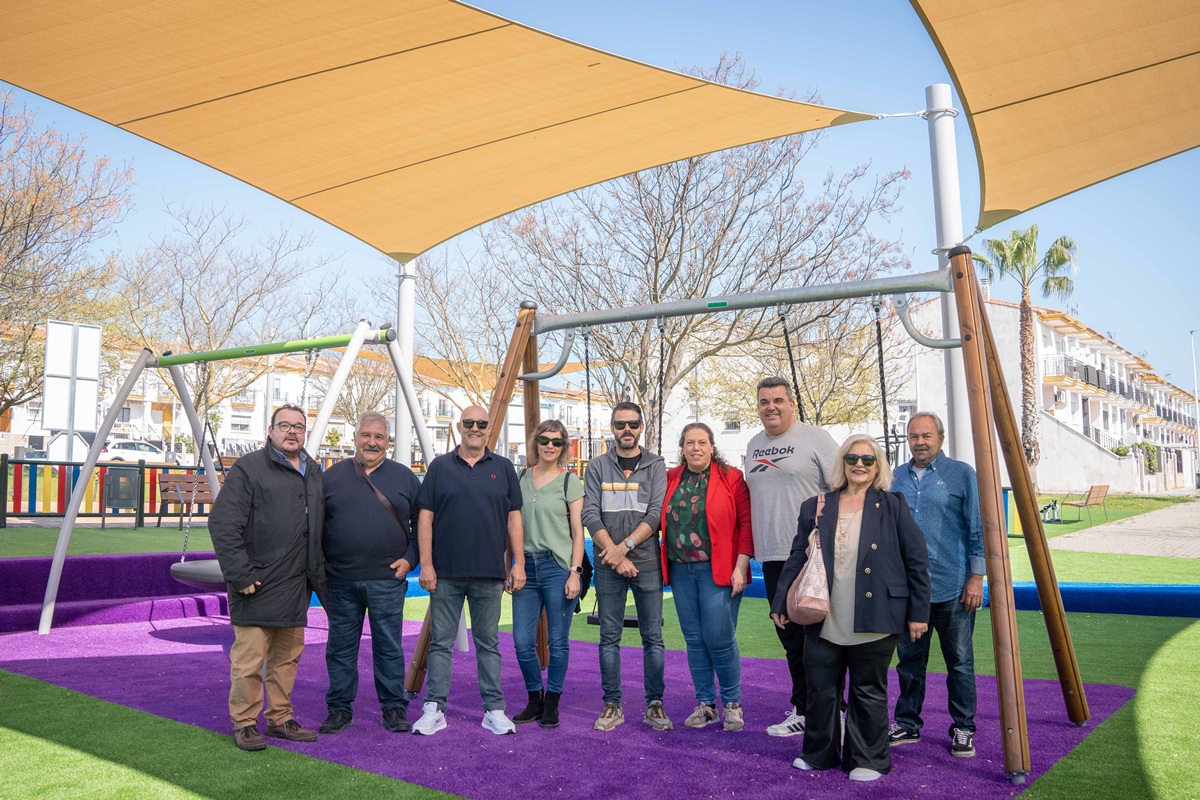 La alcaldesa en funciones, Carmen Yáñez, y el delegado de parques y jardines, Marco Antonio Guijarro, junto a la directiva de la Asociación de Vecinos de Montealto, han visitado los nuevos parques infantiles en esta barriada que han contado con una inversión de casi doscientos mil euros.