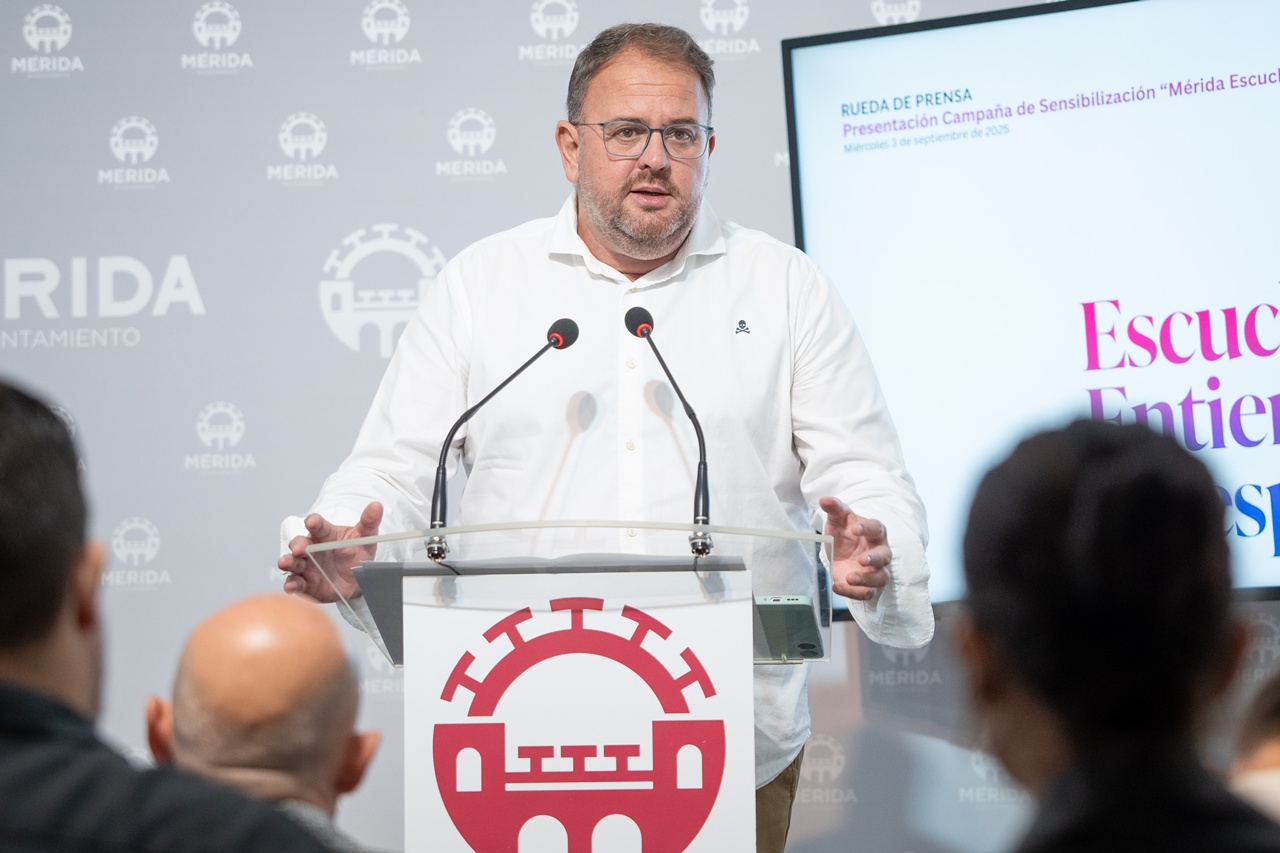 El alcalde de Mérida, Antonio Rodríguez Osuna, ha presentado este miércoles la campaña de concienciación y sensibilización “Mérida Escucha, Entiende y Respeta”, que surge como respuesta al auge de los mensajes de odio, por lo que el objetivo de la misma no es solo concienciar y sensibilizar sobre “este tipo de conductas ilícitas, prejuiciosas e intolerantes, sino invitar también a la reflexión, desde el respeto”.