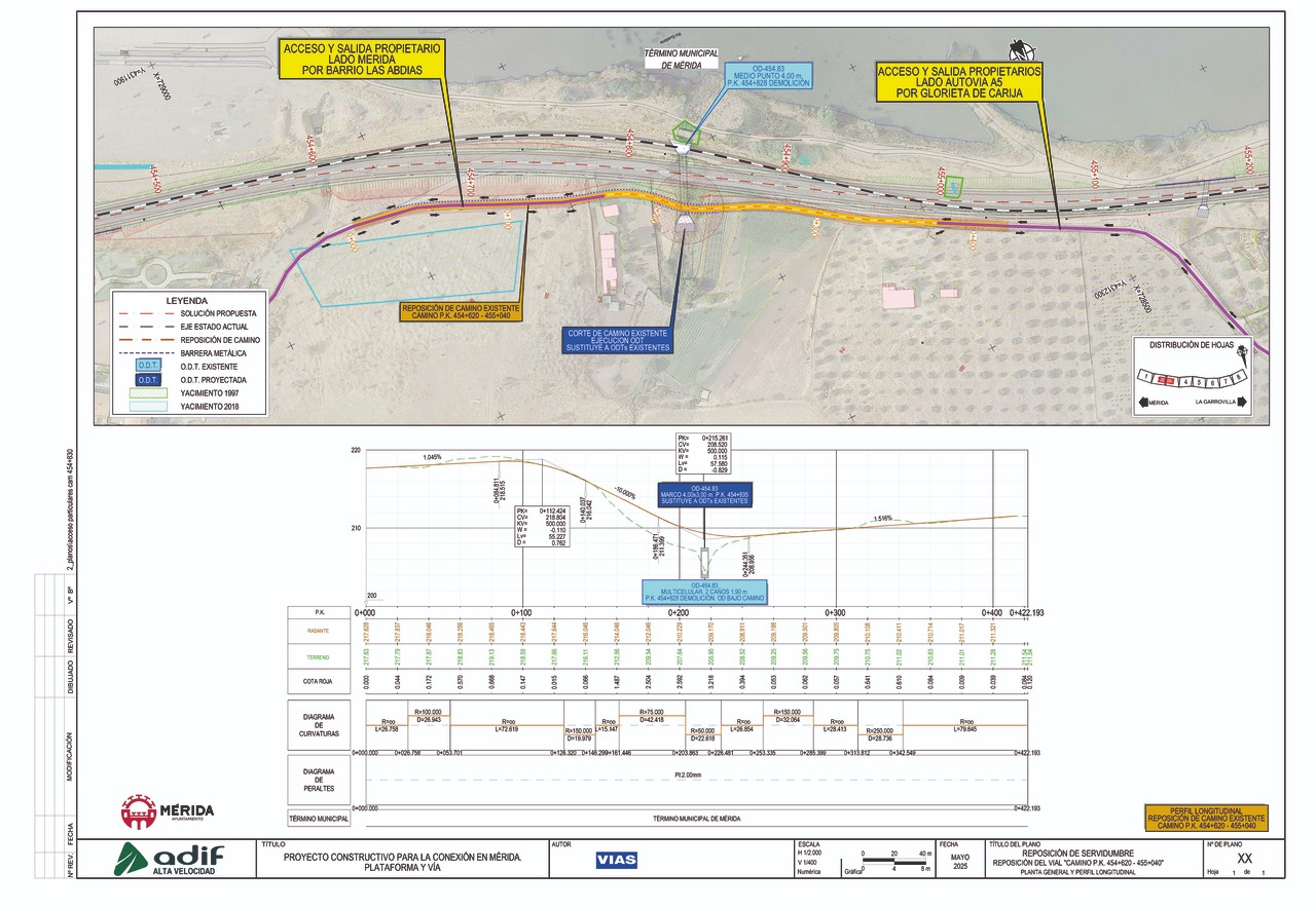 El Ayuntamiento de Mérida informa sobre la próxima actuación que ADIF llevará a cabo en el camino rural de la Calera en Mérida, que comenzará la primera semana del próximo mes de agosto.