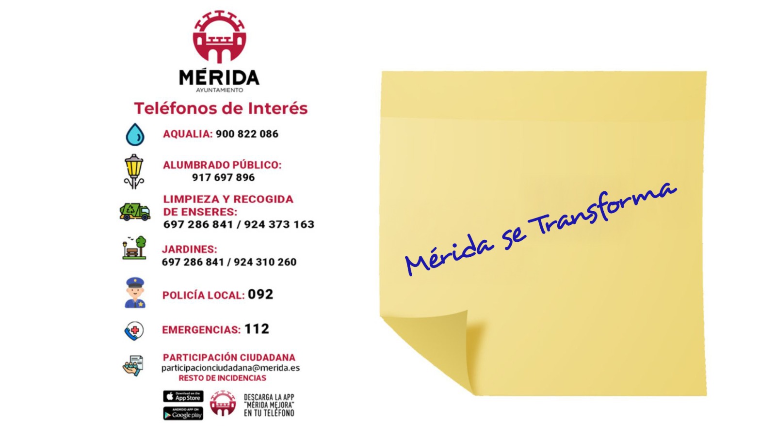 Los teléfonos son los de emergencia, Policía Local, Aqualia, Limpieza y Recogida de Enseres, Jardines, alumbrado público y Participación Ciudadana.
