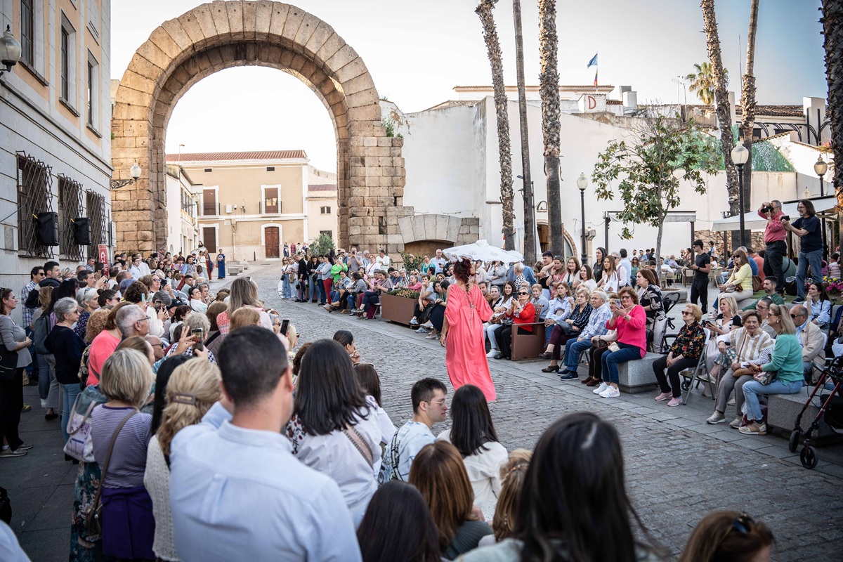 - Se trata de la segunda edición de la pasarela de moda textil para el comercio de Mérida “Emérita Fashion Show”, que se celebra en el entorno del Arco de Trajano de la capital extremeña