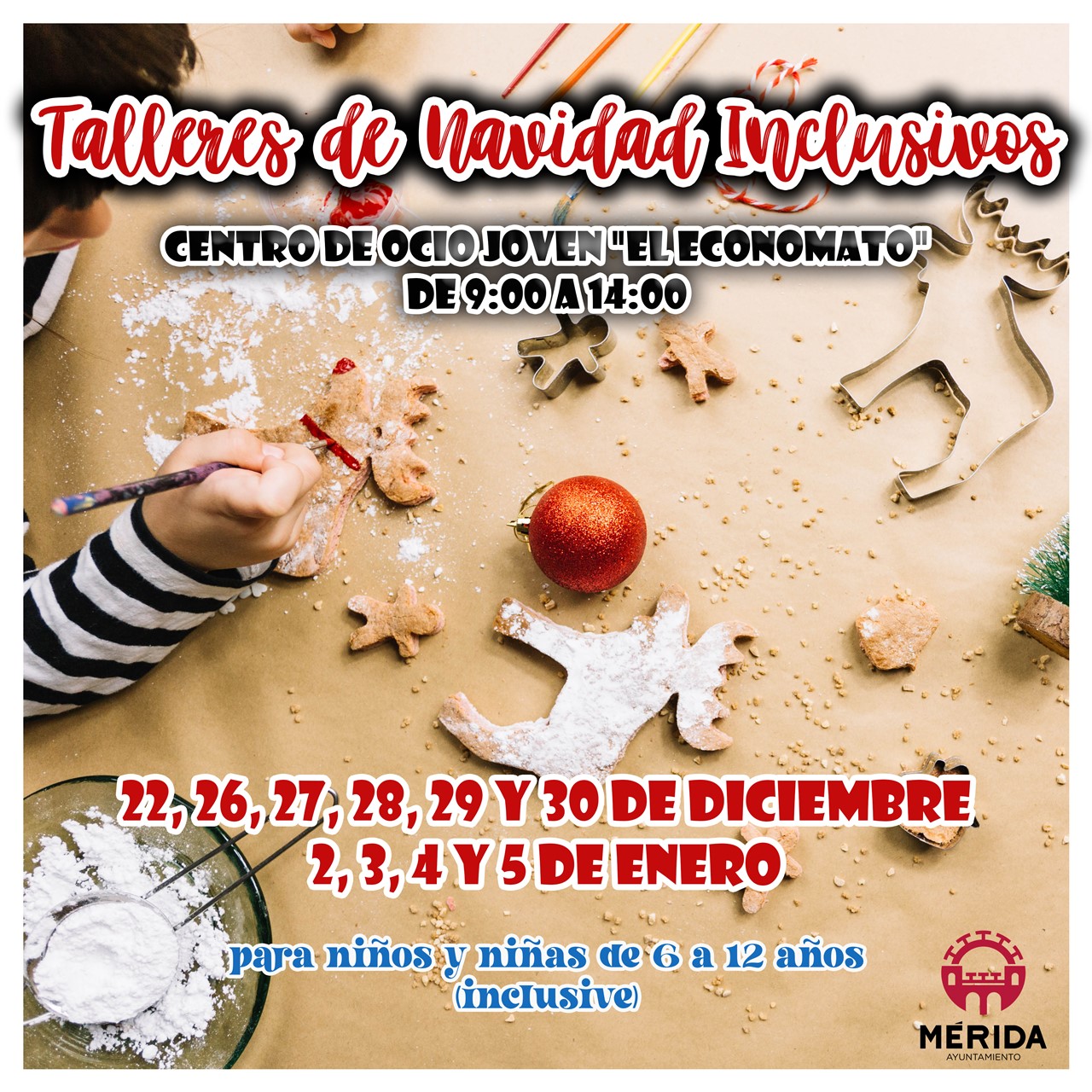 La delegación de Juventud organiza, durante los días de vacaciones de Navidad, unos Talleres de Navidad Inclusivos en el que podrán participar niños y niñas con edades comprendidas entre los 6 y los 12 años.