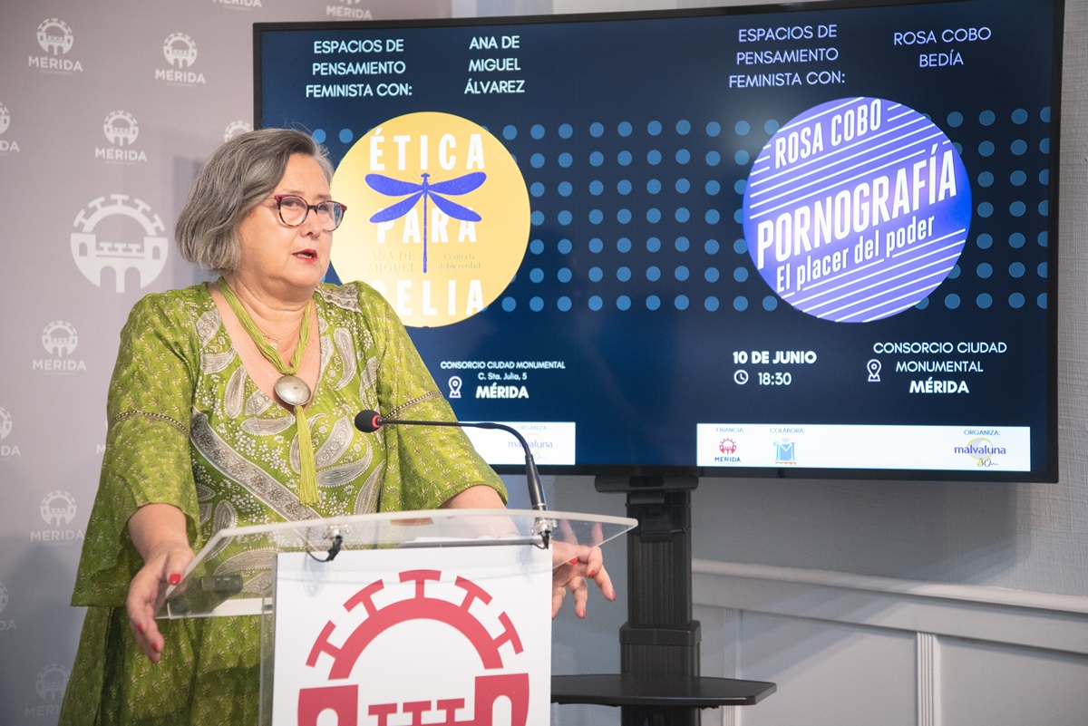 Por su parte, Rosa Cobo es profesora titular de Sociología del Género en la Universidad de La Coruña y directora del Centro de Estudios de Género y Feministas de la misma universidad. “Lo hará también presentando su con su libro ‘Pornografía, el placer del poder’: Con esta obra, la feminista y académica Rosa Cobo relata una breve historia sobre los orígenes de la pornografía, al tiempo que pretende despertar conciencias y alertar sobre los efectos del consumo de pornografía, así como sobre su efectividad a la hora de construir un discurso y un imaginario de violencia misógino”.