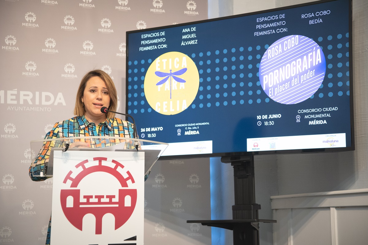 La delegada de igualdad, Ana Aragoneses, explica que “con el compromiso de este equipo de gobierno por continuar impulsando medidas que permitan avanzar en el camino hacia una igualdad real entre mujeres y hombres en nuestra ciudad, y con el objetivo de sensibilizar sobre todas las manifestaciones de las violencias machistas, y dar cumplimiento al II Plan de Igualdad de la Ciudad de Mérida y del Pacto de Estado contra la Violencia de Género ofrecemos la iniciativa llamada Encuentros de Pensamiento Feminista”.