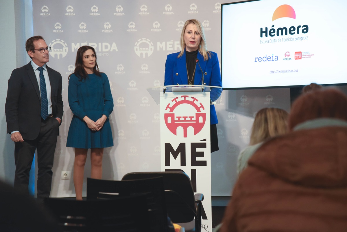 El Ayuntamiento de Mérida ha acogido hoy la presentación de Hémera, la Escuela Digital para la Transición Energética promovida por Redeia, matriz de Red Eléctrica, y la Federación Española de Universidades Populares (FEUP). Se trata de un espacio gratuito de capacitación, pionero en España, para empoderar a la ciudadanía como protagonista del nuevo modelo energético y dotarle de los conocimientos y competencias que necesitan para manejarse en él.