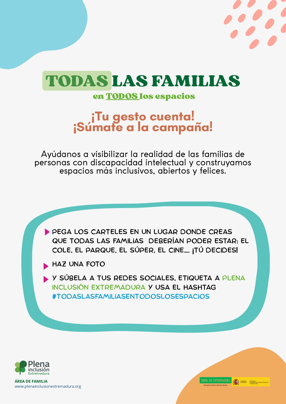 El Ayuntamiento se une a Plena Inclusión Extremadura en la campaña Todas las familias en todos los espacios