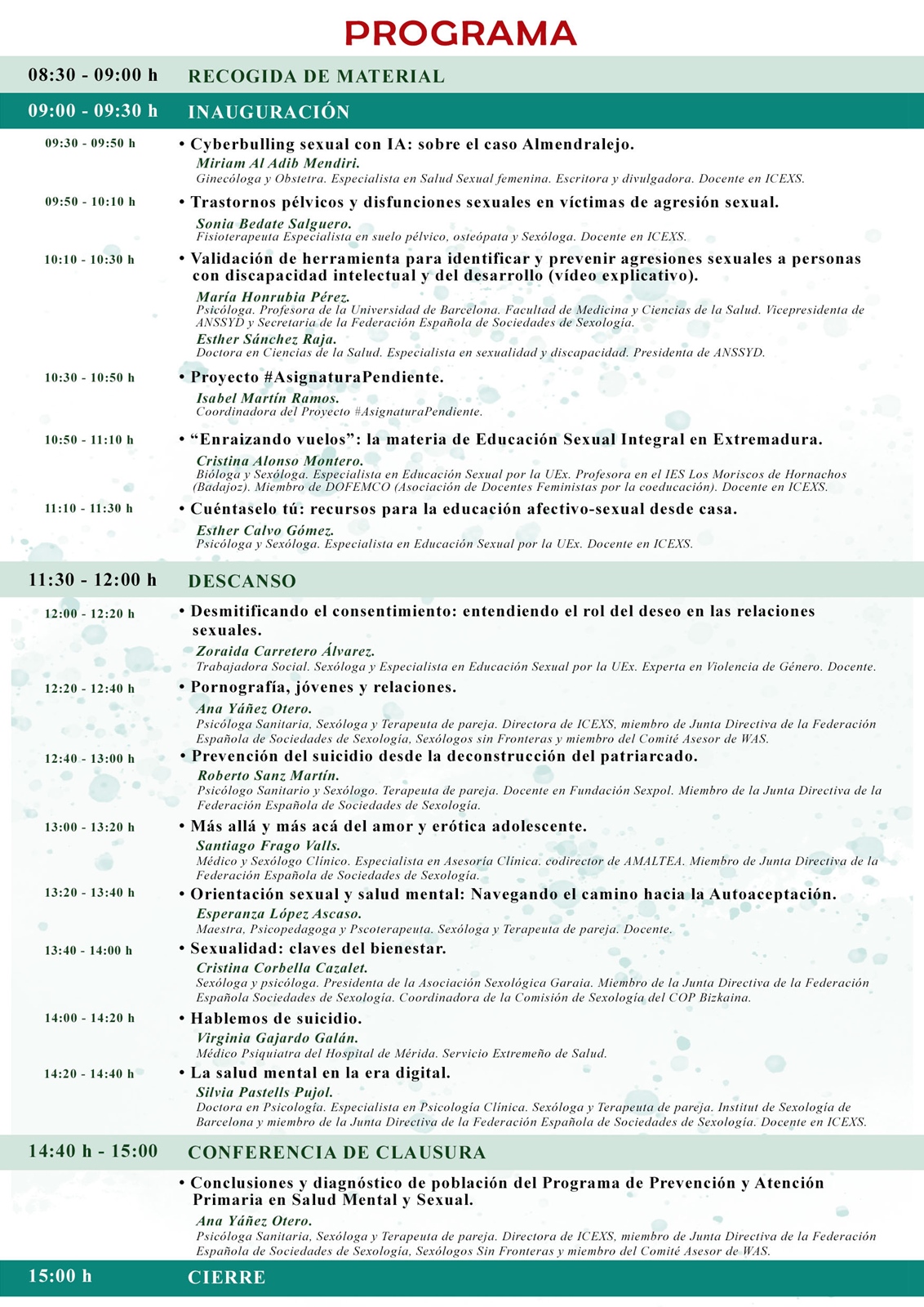 Estas Jornadas se enmarcan dentro del Programa de prevención y atención primaria en salud mental y sexual perteneciente al Plan de Acción Social 2022-2025 que está dentro de la EDUSI Mérida Central. Programa que está gestionado por el Instituto Clínico Extremeño de Sexología.