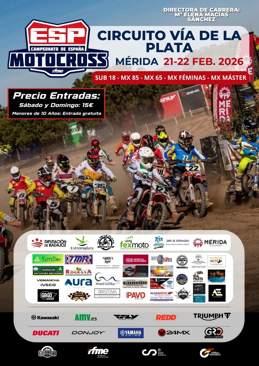 - Por su parte, Elena Macías, presidenta del Motoclub Vía de la Plata, ha expresado que es un «orgullo y un honor inmenso» que la Real Federación Española de Motociclismo haya vuelto a confiar en el circuito para arrancar la temporada y ha puesto en valor “la calidad técnica de la pista, destacando su arena fina y su drenaje” que permitirán celebrar la prueba