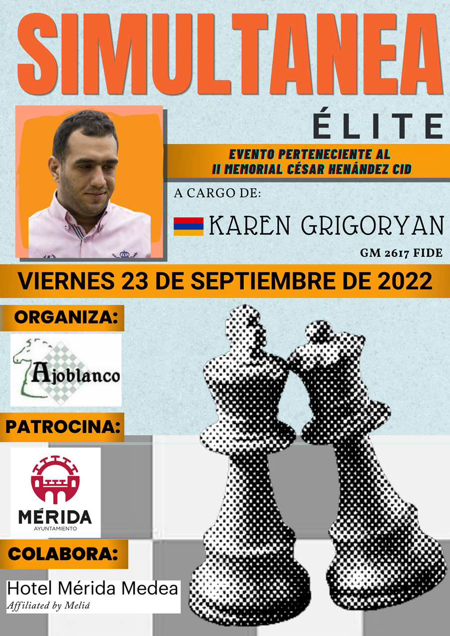 - Se celebra mañana viernes con una simultánea de 25 tableros con el Gran Maestro armenio Karen Grygorian y el sábado con un torneo con 80 participantes en el Hotel Medea Mérida.
