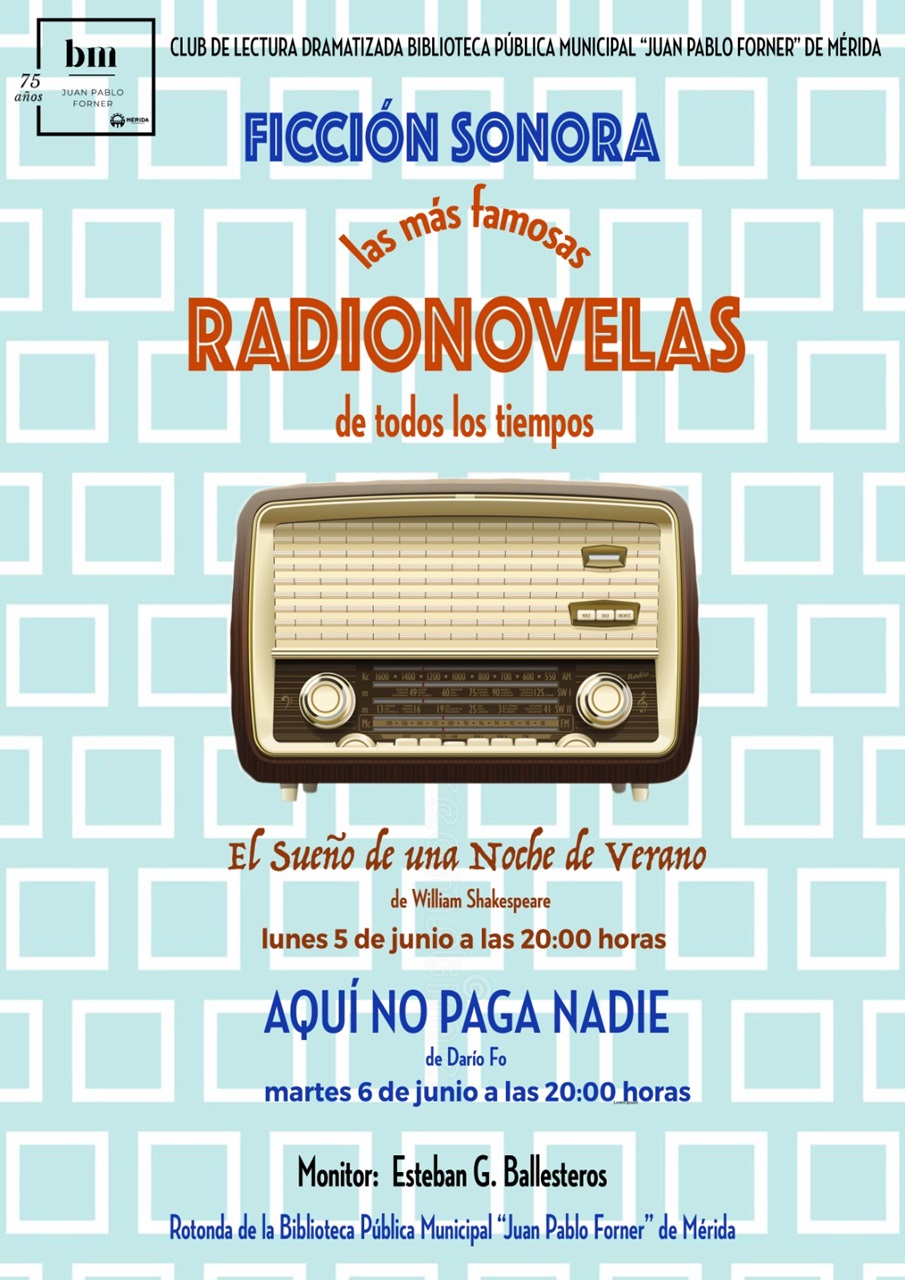 El club de lectura dramatizada de la Biblioteca Municipal Juan Pablo Forner organiza hoy lunes, 5 de junio, y mañana martes, 6 de junio, una ficción sonora de Las más famosas radionovelas de todos los tiempos.