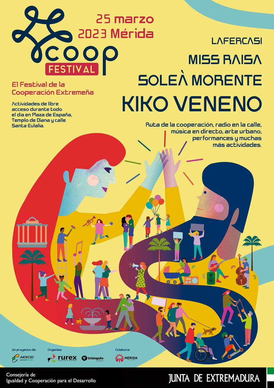 El Coop Festival 2023 pretende visibilizar el trabajo que se hace desde la Cooperación y las Ong’s extremeñas y para ello se ha conformado una programación que encabezan Kiko Veneno y Soleá Morente y que se complementará con la Ruta de la Cooperación y las propuestas ganadoras de la convocatoria de artistas “Comunicarte”.