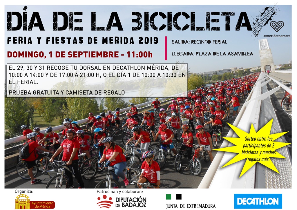 El próximo domingo, 1 de septiembre, se celebrará el tradicional Día de la Bicicleta de la Feria de Mérida que como siempre se trata de un evento lúdico-deportivo de carácter familiar para la que se esperan, aproximadamente, entre 600 y 800 participantes en una actividad que cada año aumenta la participación.