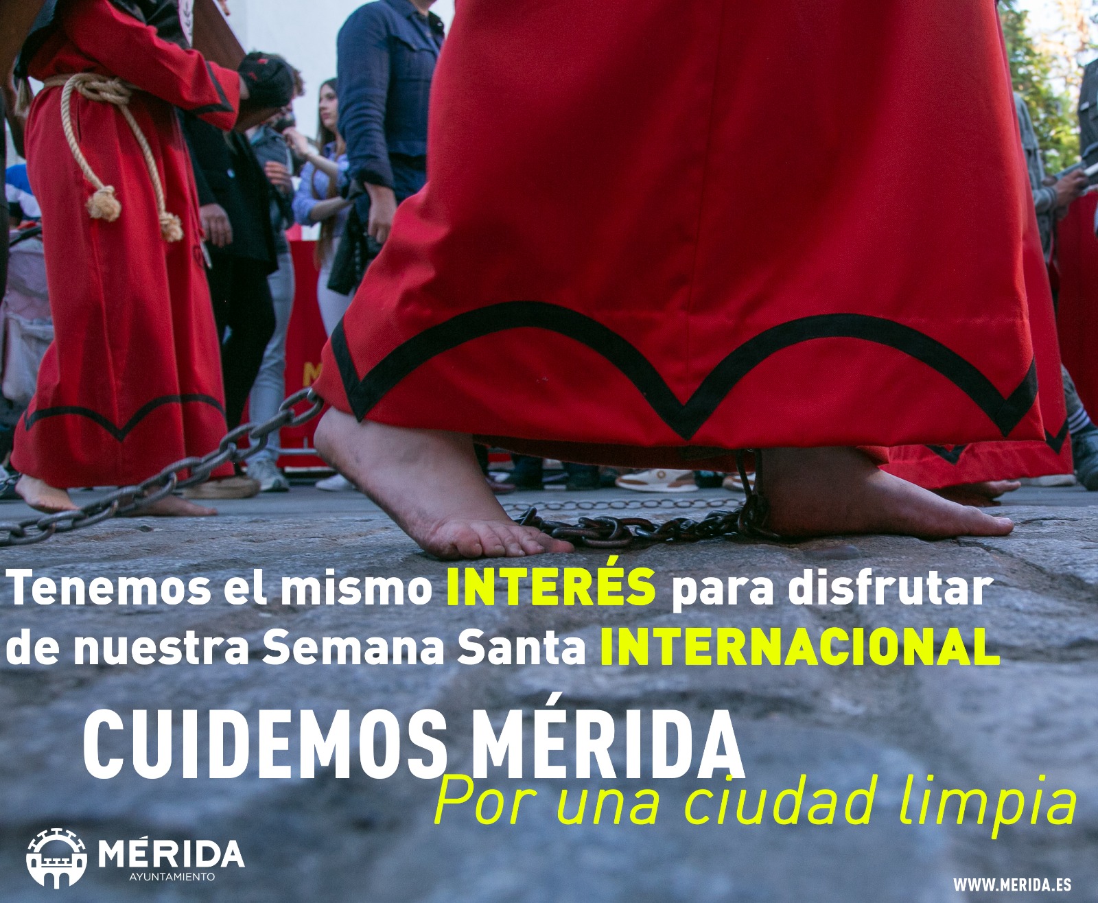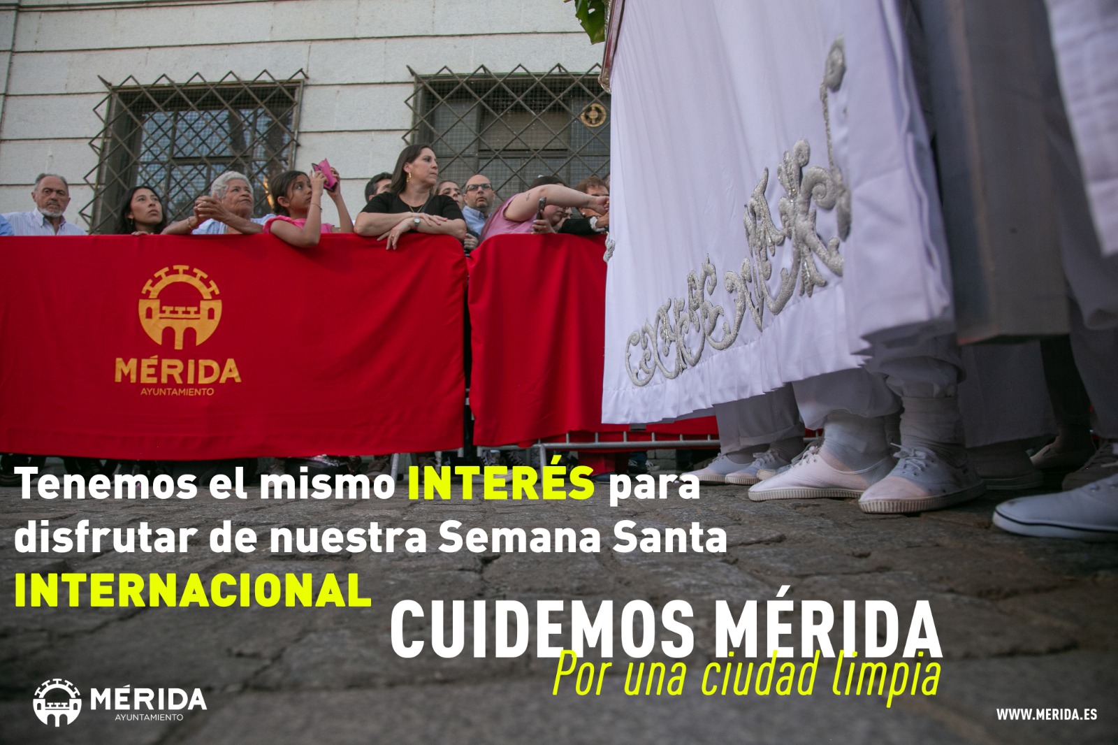 Esta campaña especial de Limpieza en Semana Santa se incluye dentro de la que viene realizando el Ayuntamiento de Mérida “Cuidemos Mérida. Por una ciudad limpia” y , en este caso, incidiendo en la Semana Santa de Interés Turístico Internacional.