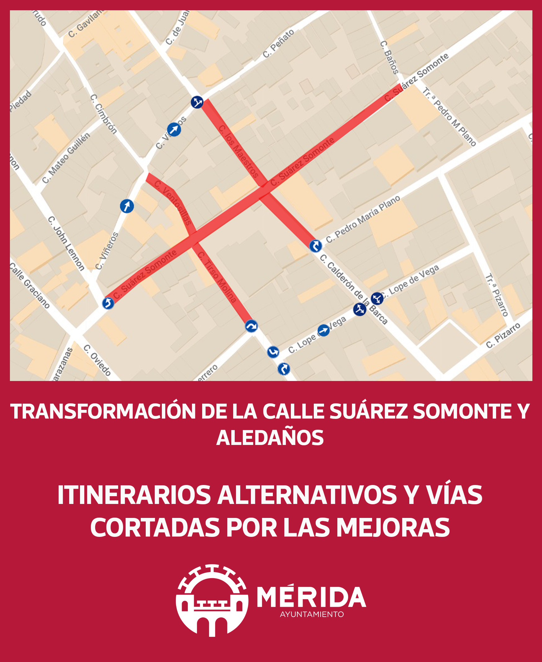 Fernández ha explicado que, en la primera fase, se cortará el tráfico desde la Plaza de Santo Domingo hasta el Hotel Nova Roma,, al tiempo que ha señalado que “toda la información se va a poner actualizada en la página web del Ayuntamiento y que se ha habilitado un correo electrónico plataformaunicamerida@merida.es”