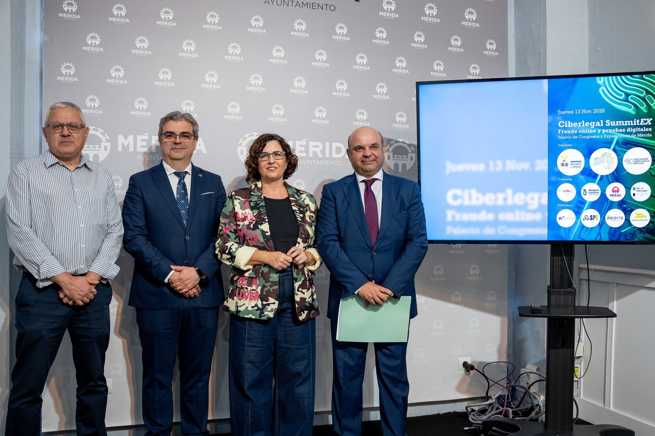 La delegada municipal, Susana Fajardo, ha presentado este martes la primera edición del congreso «Ciberlegal SummitEX. Fraude online y pruebas digitales», una cita que tendrá lugar el próximo 13 de noviembre en el Palacio de Congresos de Mérida. A la presentación de este congreso también han asistido el decano del Ilustre Colegio de Abogados de Badajoz (ICABA), Ildefonso Seller, el director del Centro Universitario de Mérida, Pedro José Pardo, y el presidente de la Asociación Empresarial IMPULSO, Víctor M. León.